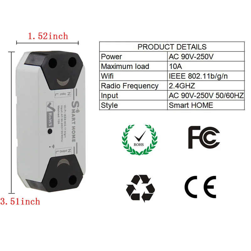 Frankever New Smart Breaker AC 90V-250V 10A APP Wifi Control Wireless Smart Switch Programmable Timer Voice Control FK-CB10-2