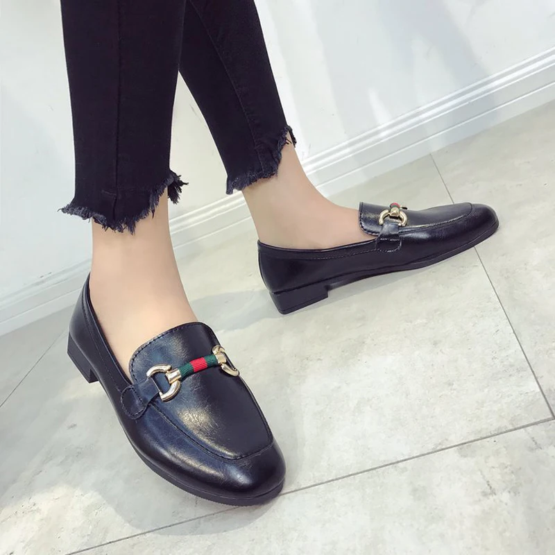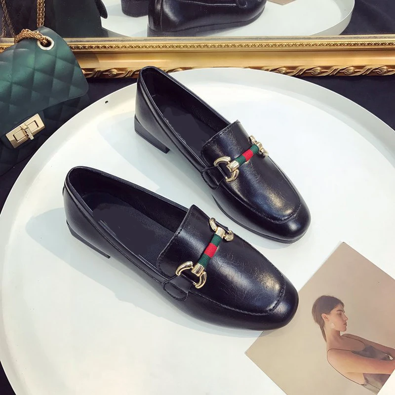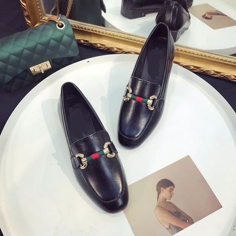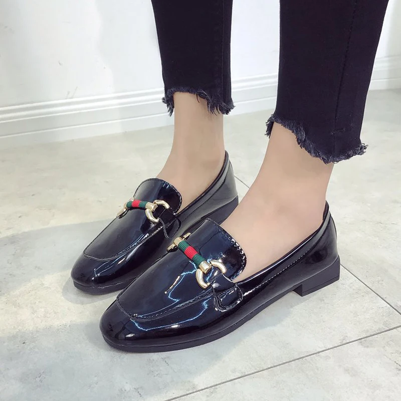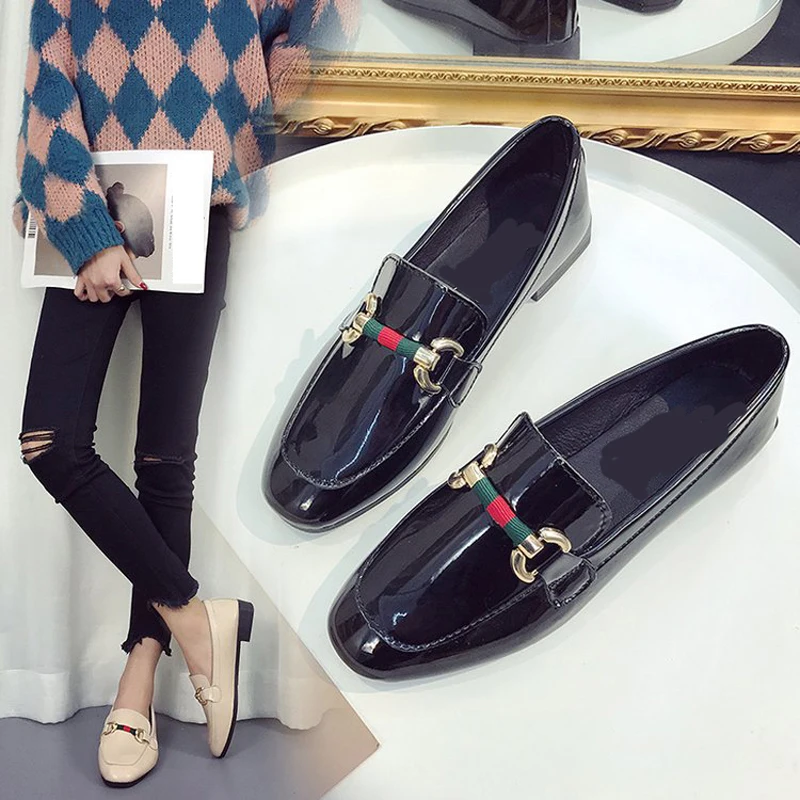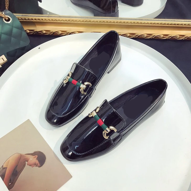free freight New style of women’s shoes with low heels and casual single shoes with square toe doudou shoes patent leather