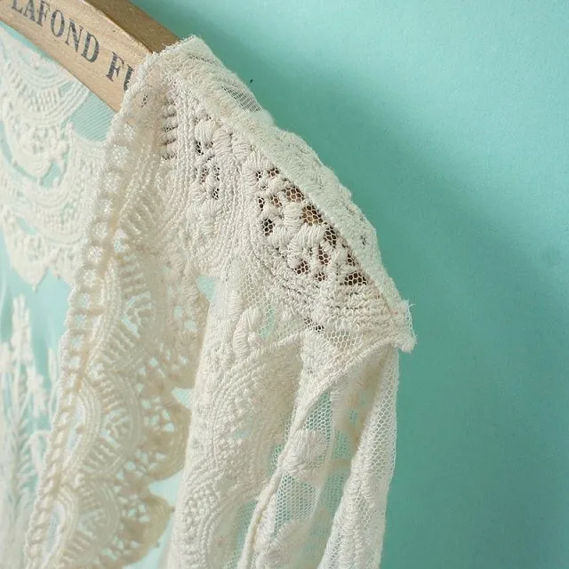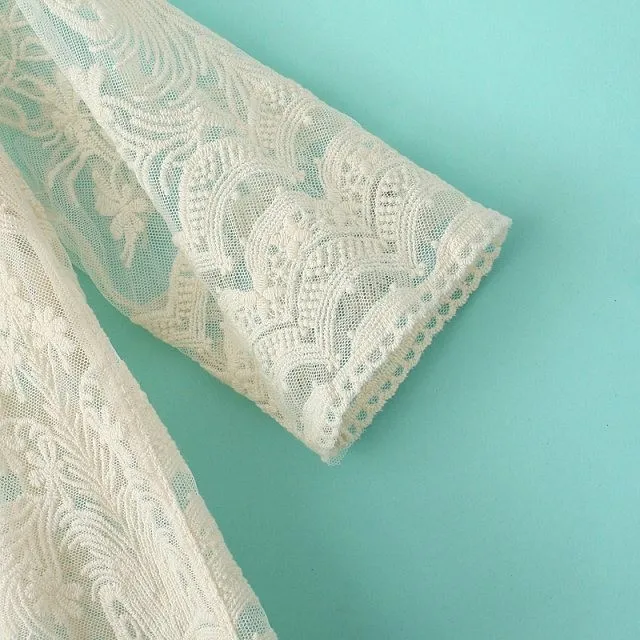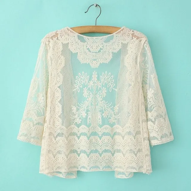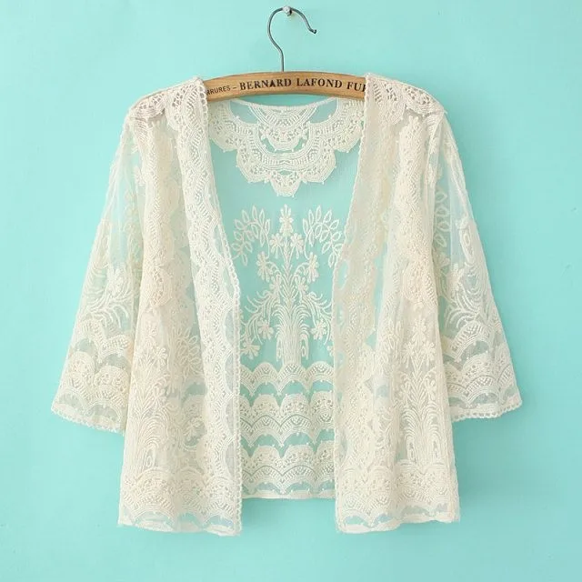 Free shipping 2016 korean style summer cardigan women casual beige color lace cardigan