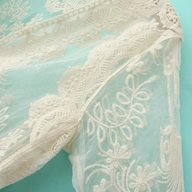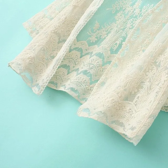 Free shipping 2016 korean style summer cardigan women casual beige color lace cardigan