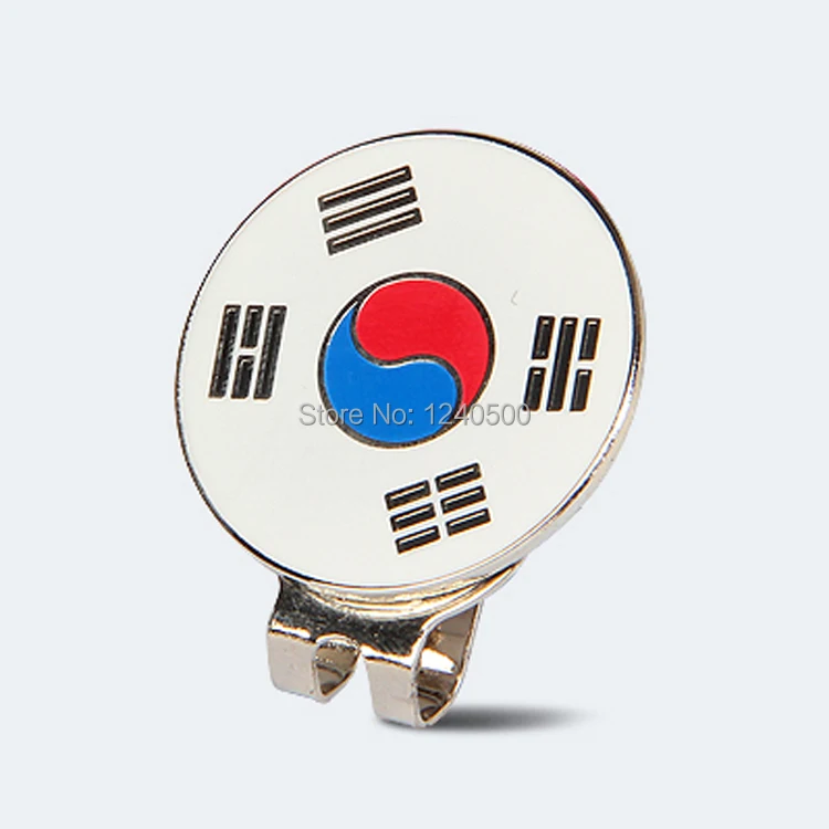 Free Shipping 2017 New Arrival Korea Flag Golf Cap Clip Golf Ball Marker Alloy Professional 1.18″