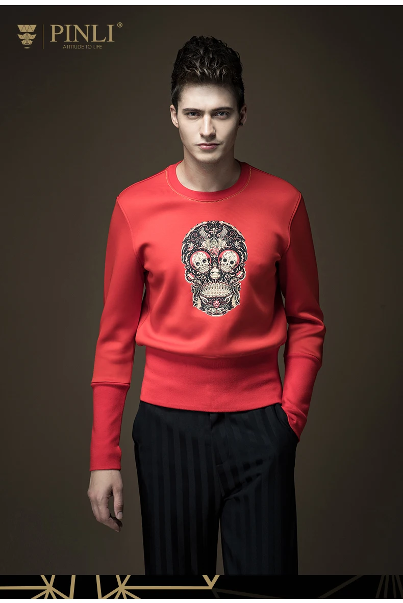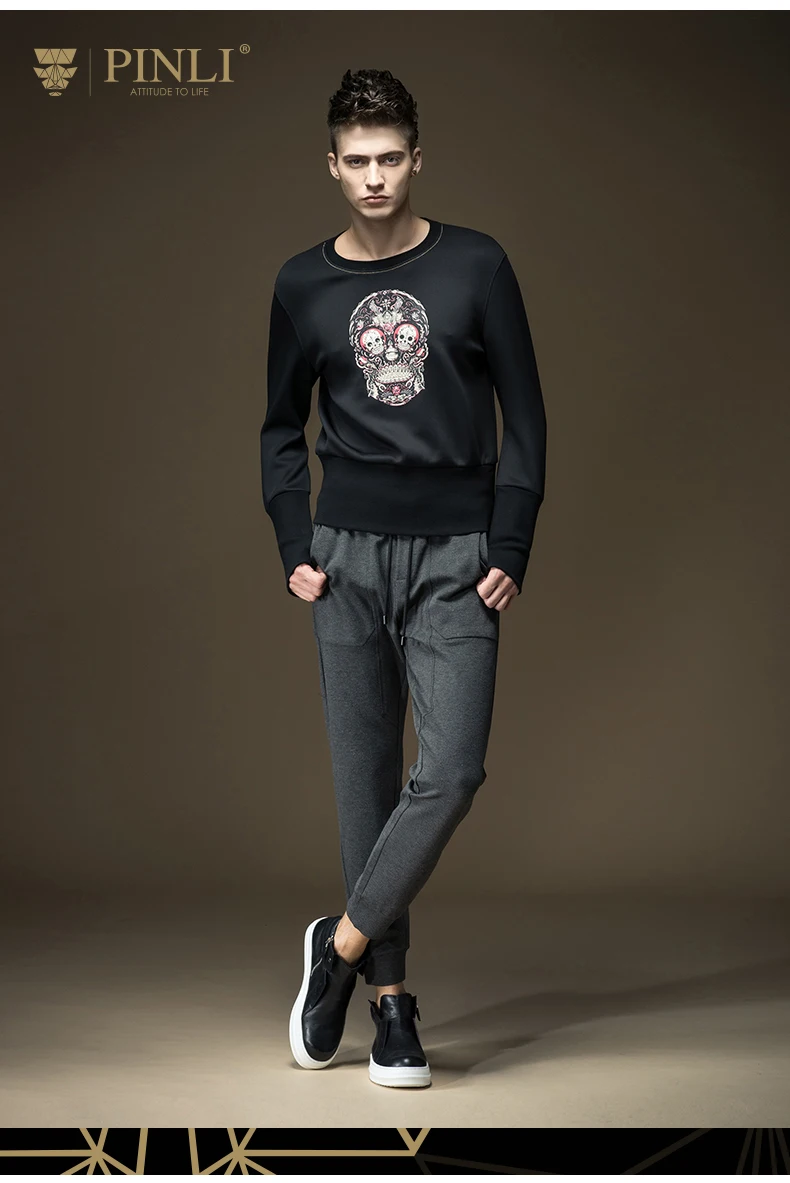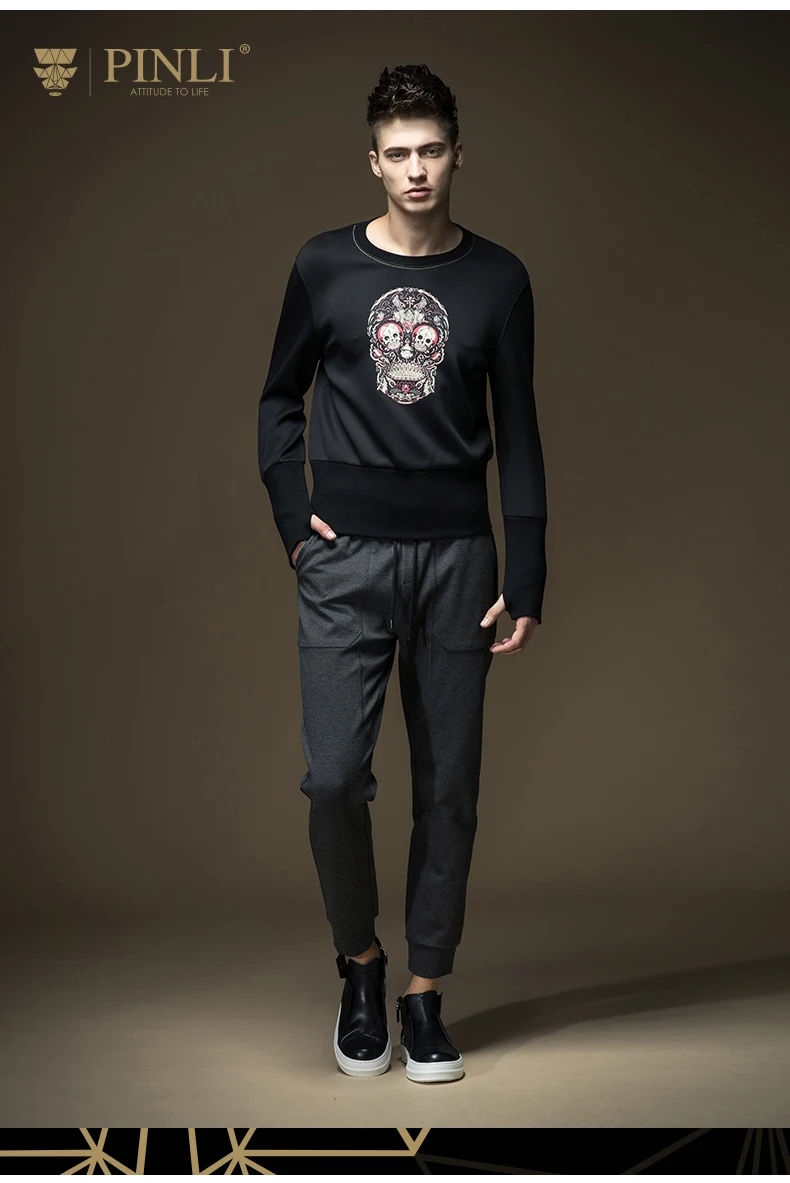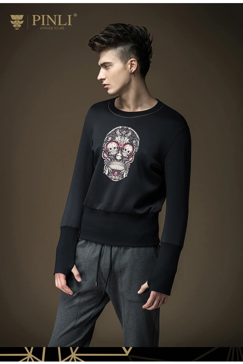 Free shipping 2017 spring new men’s male man slim round neck Skull print printing pullover black Sweatshirts Hoodies B16320429
