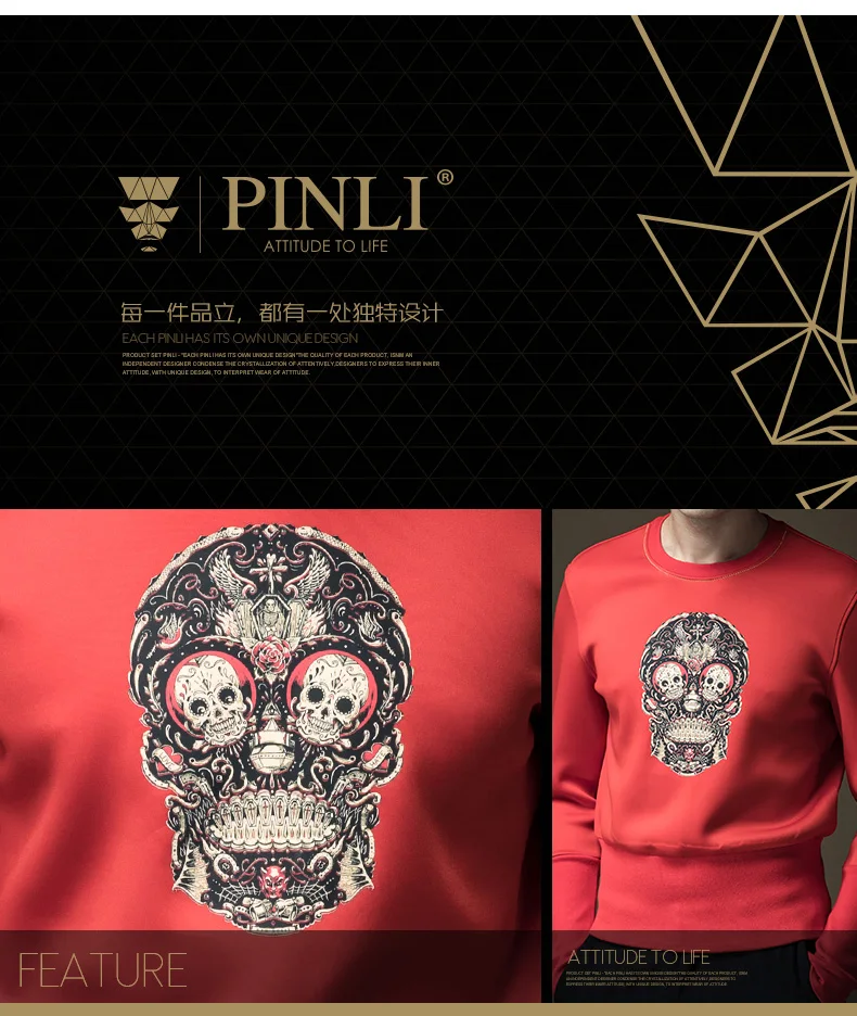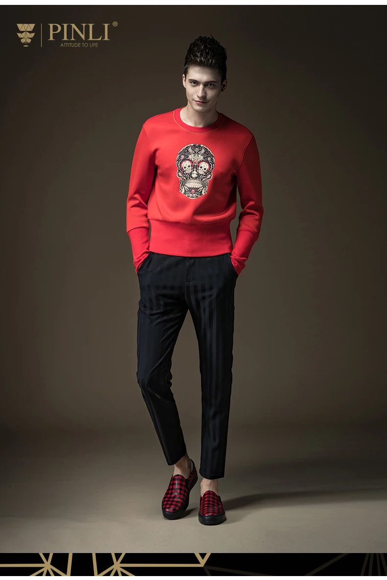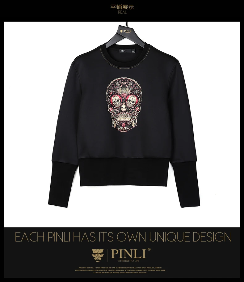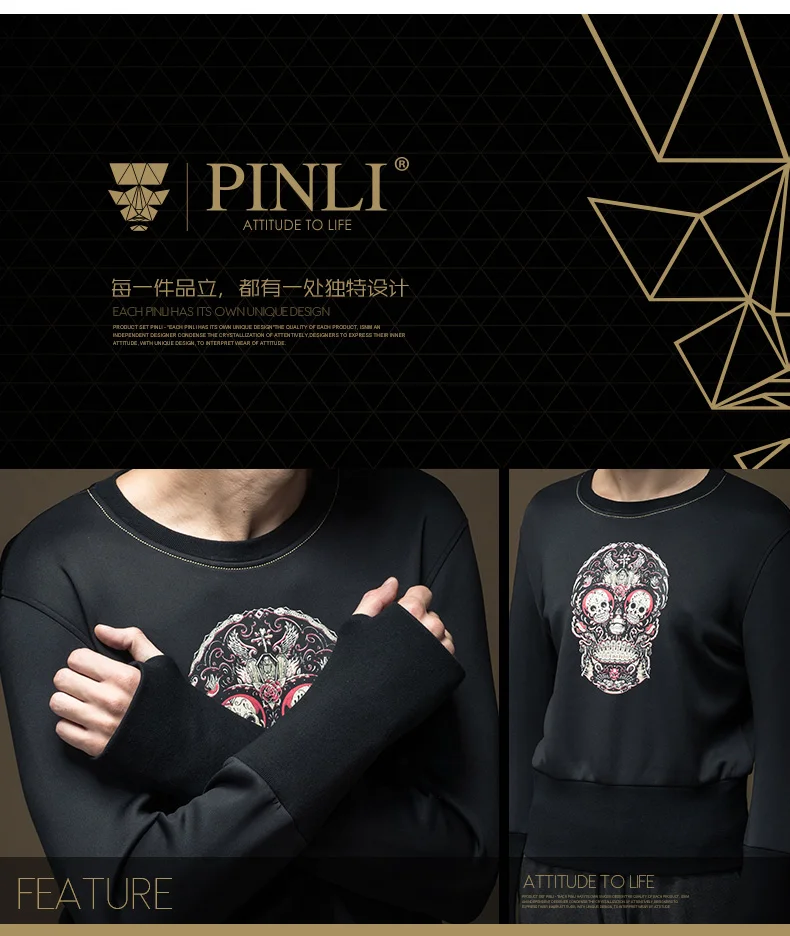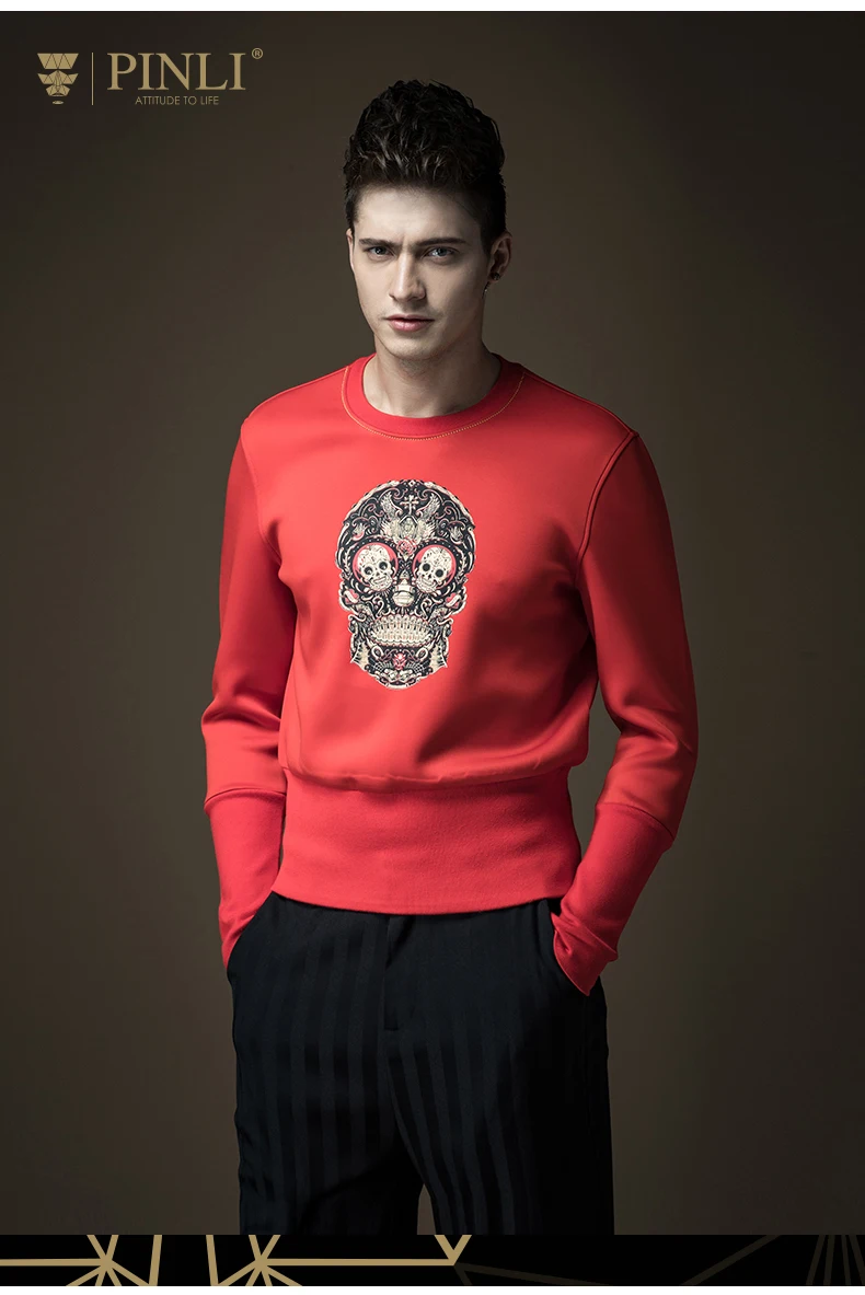Free shipping 2017 spring new men’s male man slim round neck Skull print printing pullover black Sweatshirts Hoodies B16320429