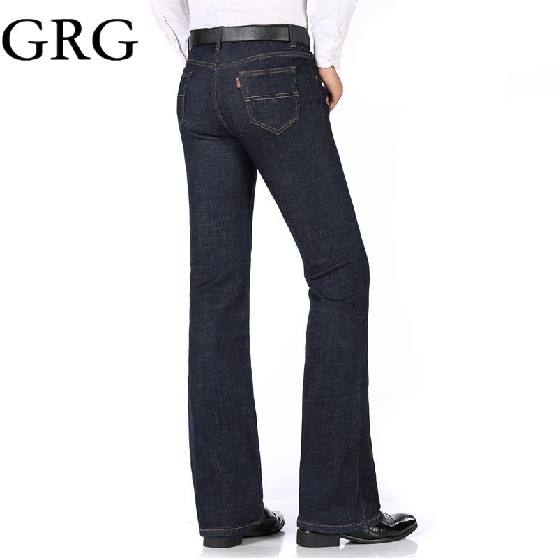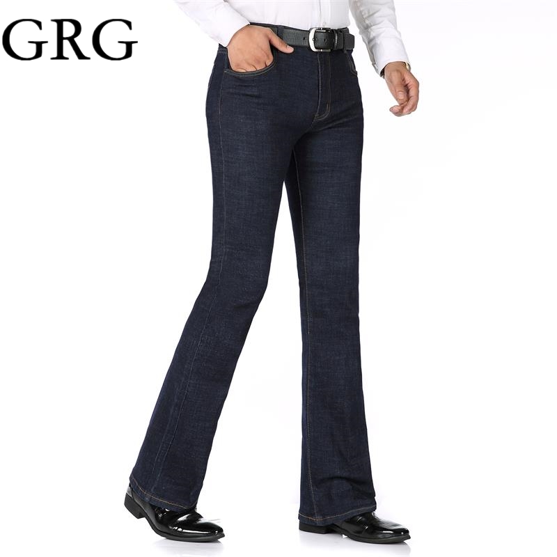 Free Shipping 2018 High Quality Men Spring Business Casual Jeans Mid Waist Black blue Flares Bell Bottom Pants Plus Size 26-34