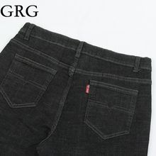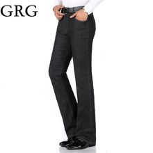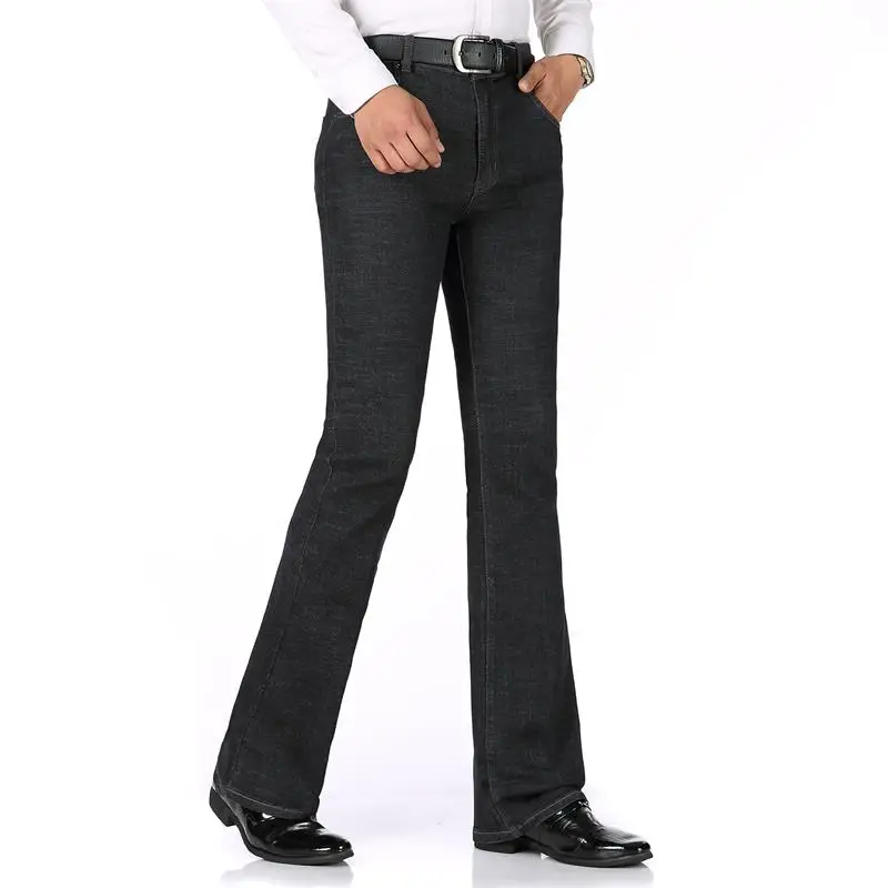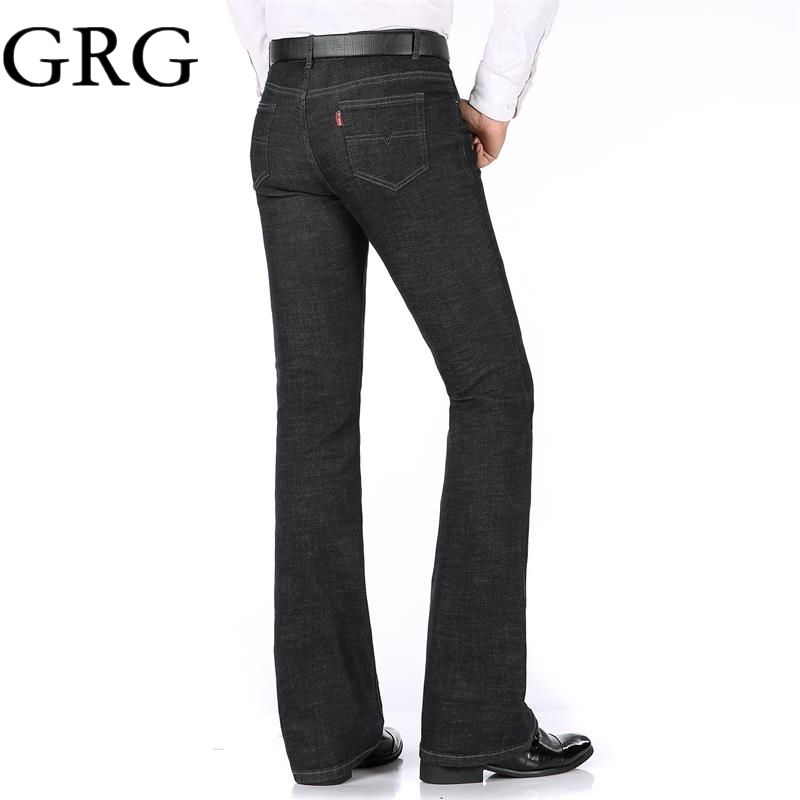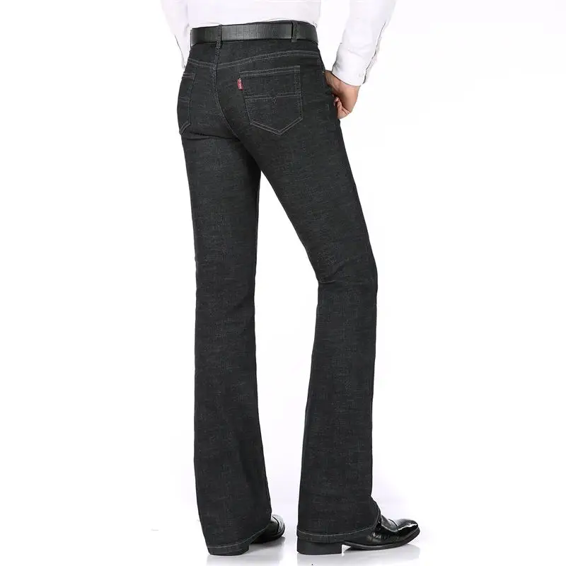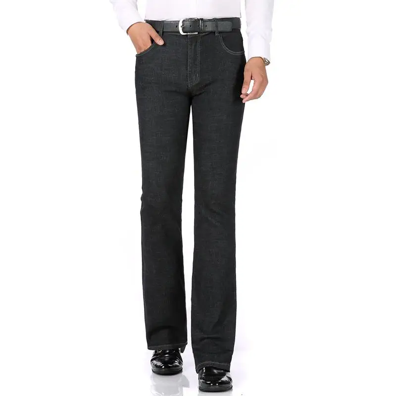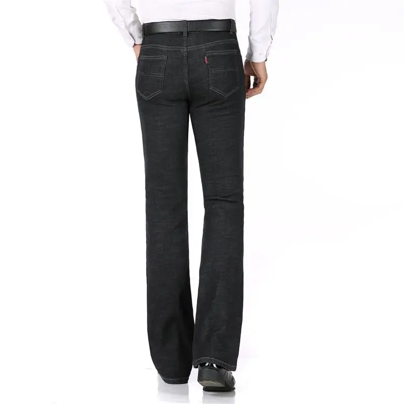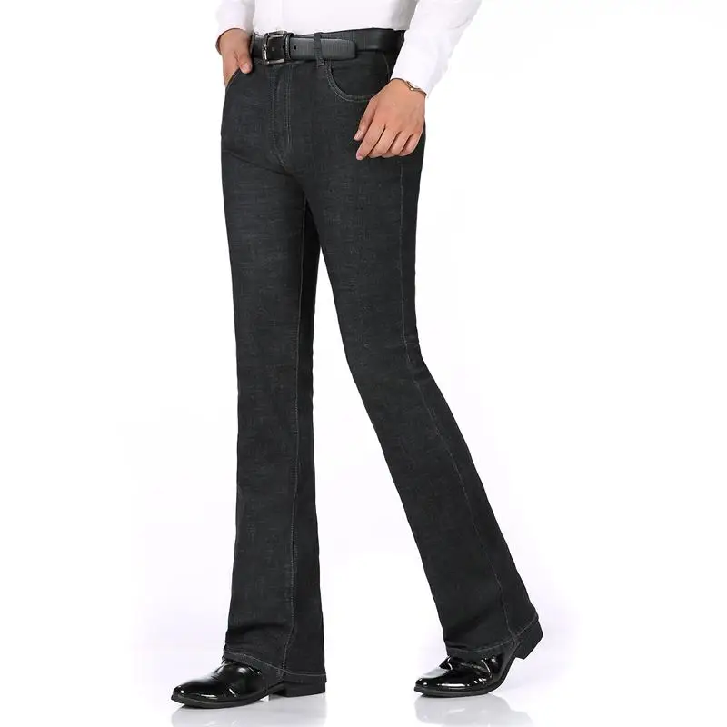 Free Shipping 2018 High Quality Men Spring Business Casual Jeans Mid Waist Black blue Flares Bell Bottom Pants Plus Size 26-34