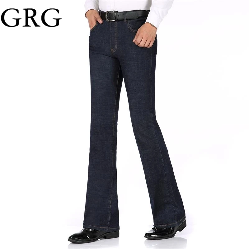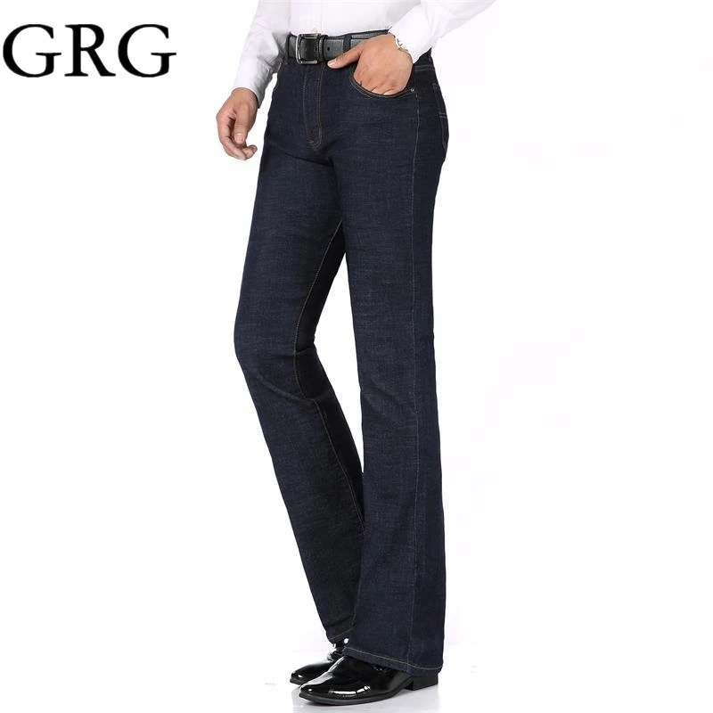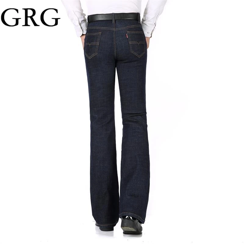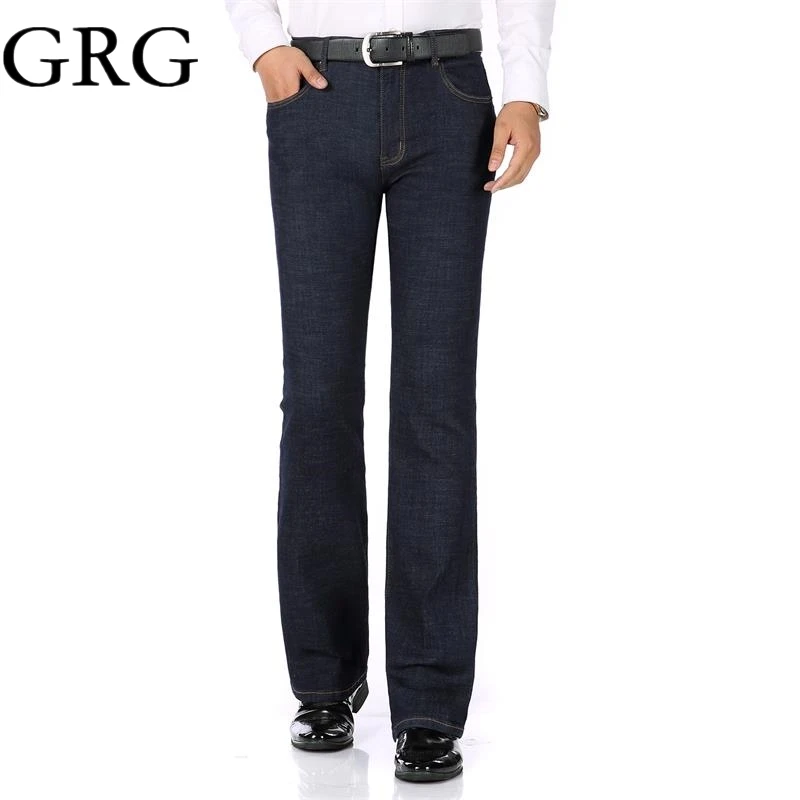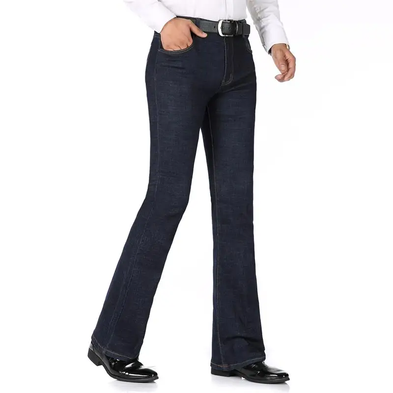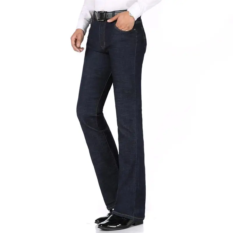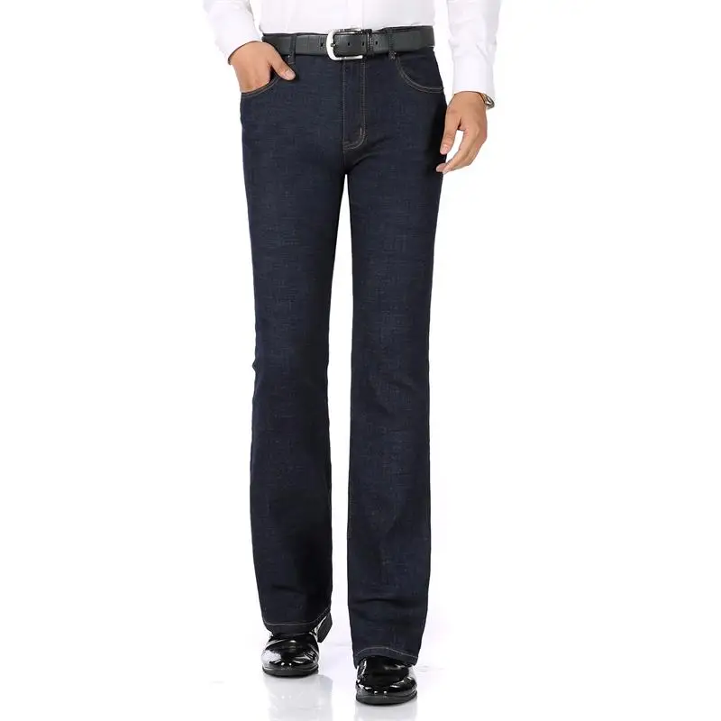 Free Shipping 2018 High Quality Men Spring Business Casual Jeans Mid Waist Black blue Flares Bell Bottom Pants Plus Size 26-34