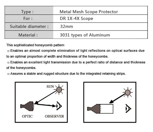 Free Shipping 32MM Kill flash metal mesh scope protector For DR1x-4x Scope GZ330084