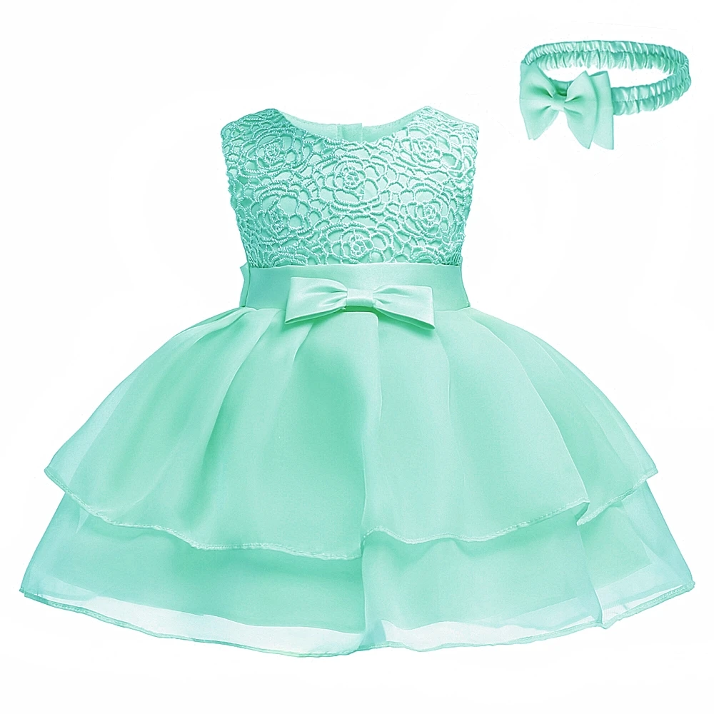 Free Shipping 3M-24M Newborns Dresses 2018 New Arrival Mint Green Baby Dress For 1 Year Girl Birthday Toddler Christening Gowns