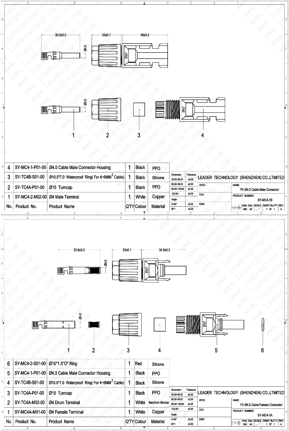 LEADER® Mc4 Connector is Compatible with multi contact 4 connector,suitable to solar cable 2.5 mm2, 4mm2 and 6mm2 in solar connection project.quickly and reliable connection of the solar cables to the photovoltaic system(solar panels, converters).