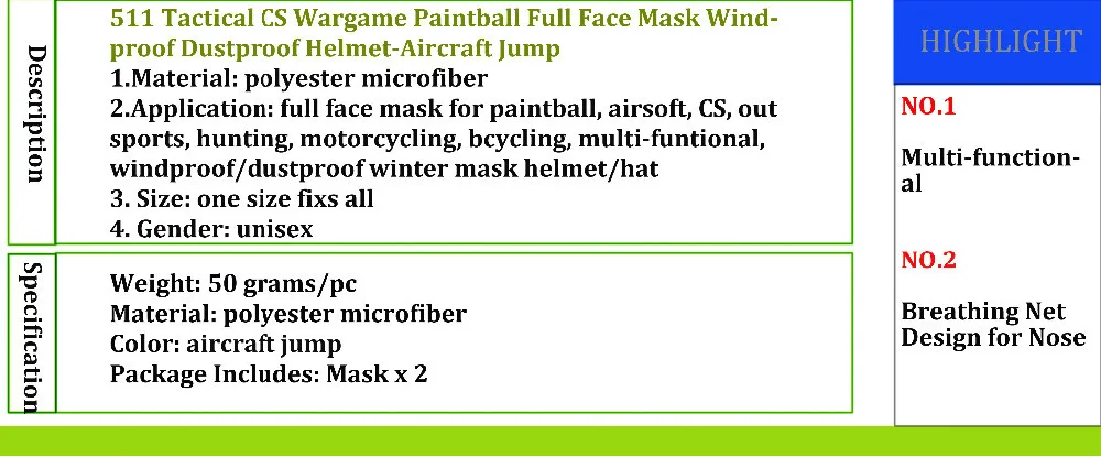 511 Tactical CS Wargame Paintball Full Face Mask Windproof Dustproof Helmet-Aircraft Jump