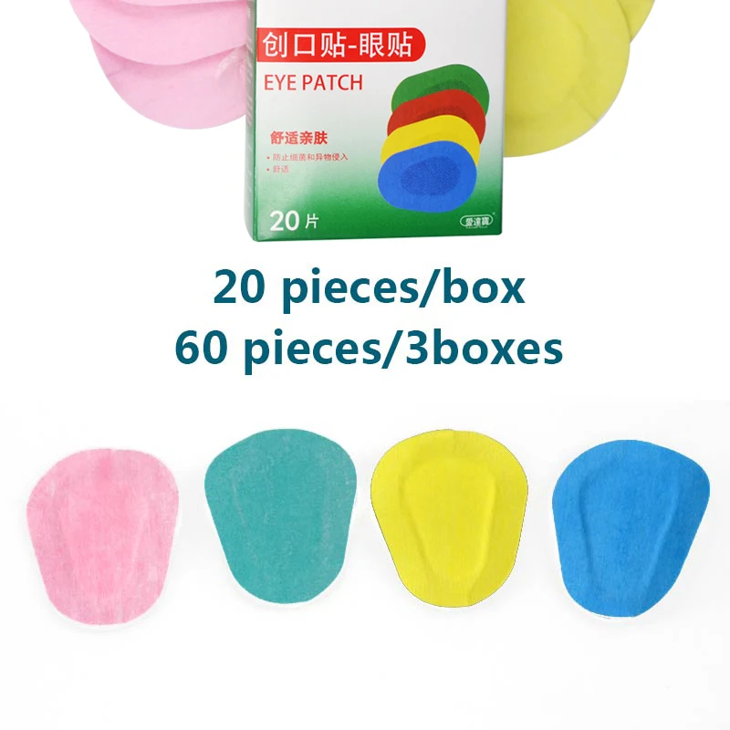Free Shipping 60PCs/3Boxes Colorful Breathable Eye Patch Band Aid Medical Sterile Eye Pad Adhesive Bandages First Aid Kit