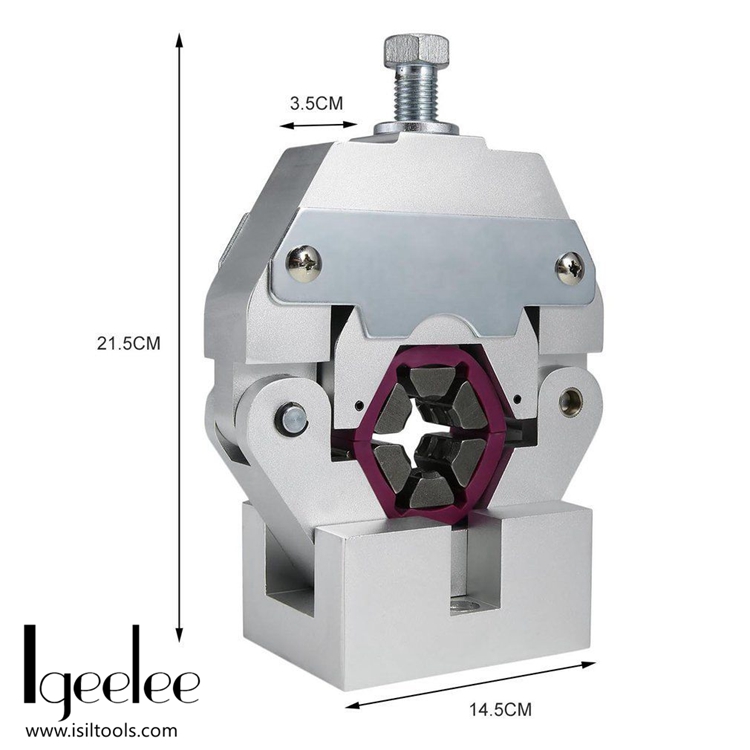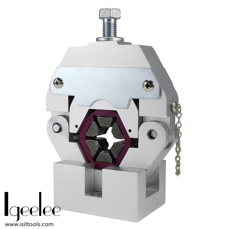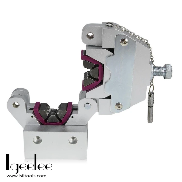 Manual A/C Hose Crimper kit is applicable for beadlocking fitting. The tool includes four sets of dies for barrier a/c hose. The crimping tool has a base that can be mounted to a bench for easy use,or the base can be held by any vise