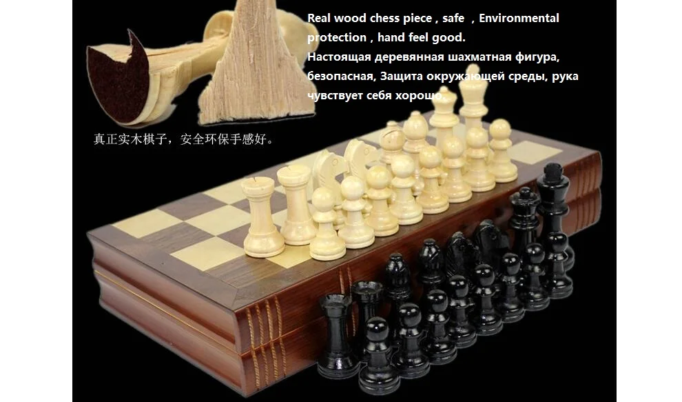 Free shipping Book shape High Quality Wooden International Chess checkers Set Board Game Foldable Portable Kids Christmas Gift