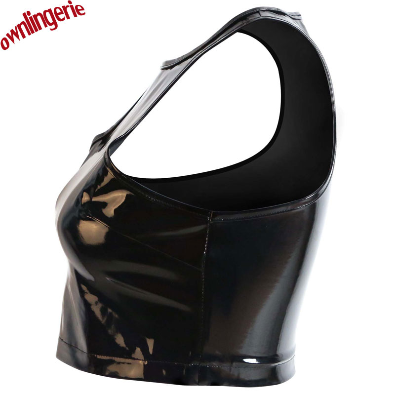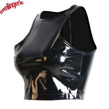 Free Shipping Cheap Women Short Crop Top Fetish Style Clubwear Croptops Zip Back PVC leather Tank Tops,Wetlook Pu Tube Top