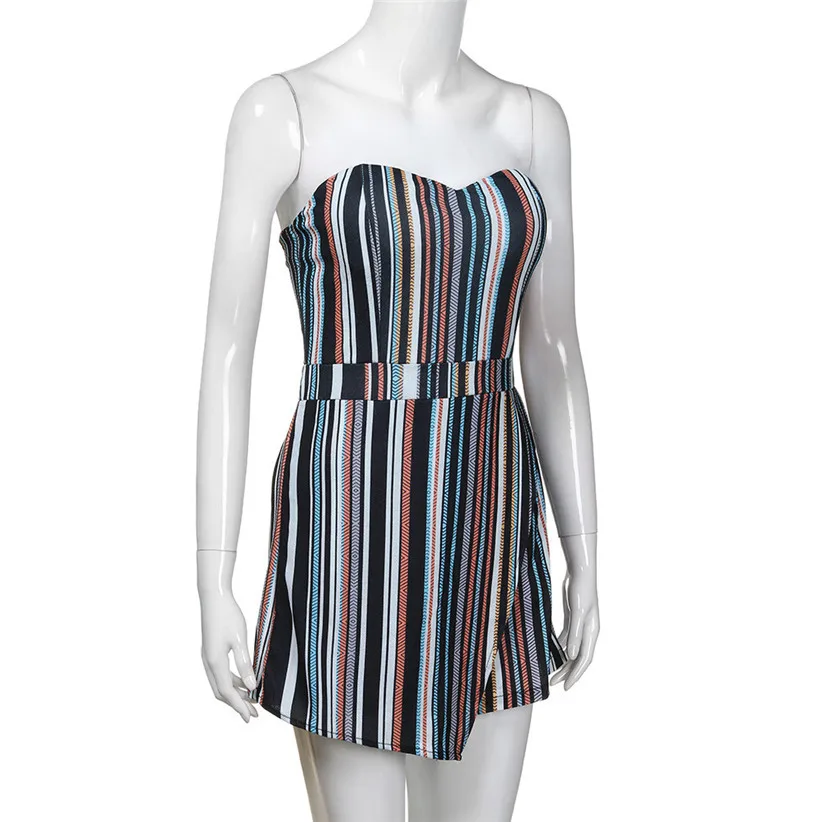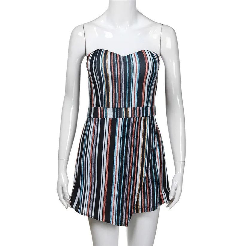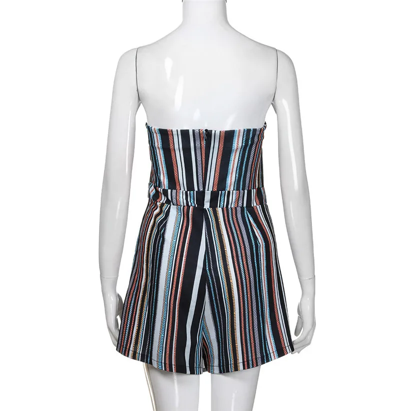 Free Shipping Classic Striped Strapless Jumpsuit Women Summer Holiday Off Shoulder Sleeveless Rompers Playsuit 80509 Drop Ship