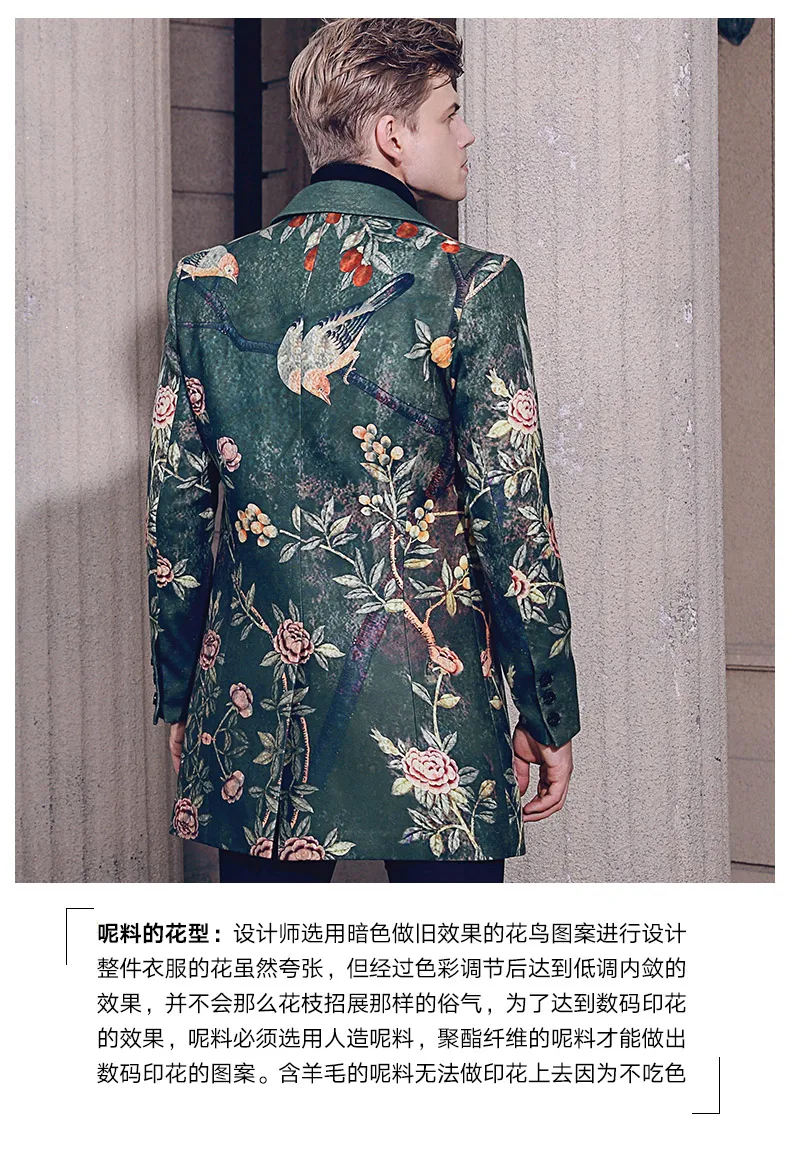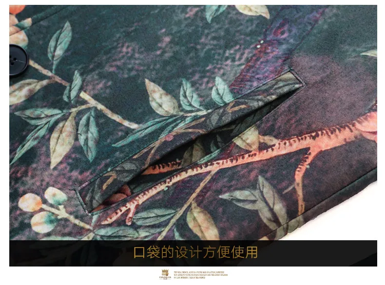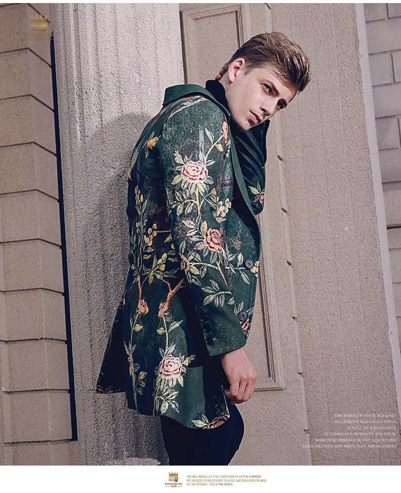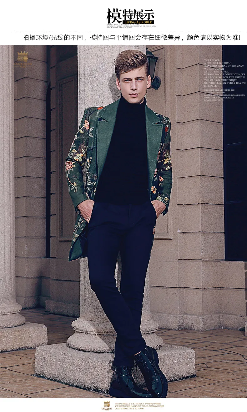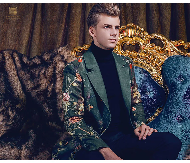 Free Shipping fanzhuan New 2017 fashion casual man male Men’s Winter printed suit style collar hair green long coat 710172