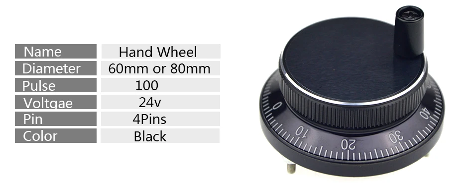 free shipping handwheel Diameter is 60mm or 80mm Pulse 100 Voltgae 24v 4 pins hand wheel CNC machine Pulse Encoder Generator