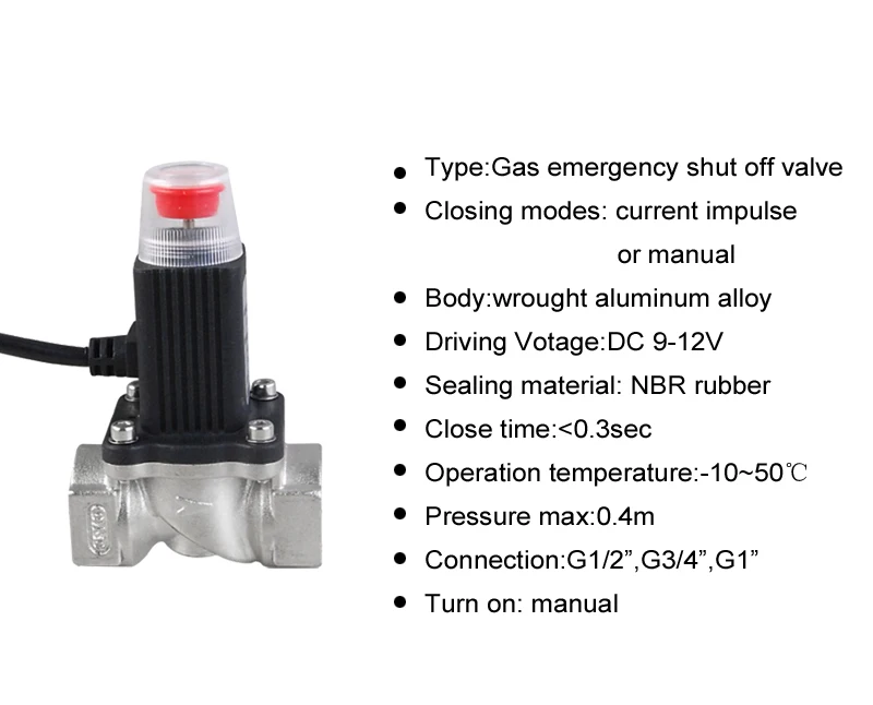 Free shipping LPG Nutural Gas emergency shut off solenoid valve for Home security alarm system