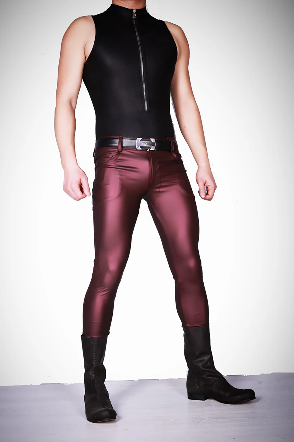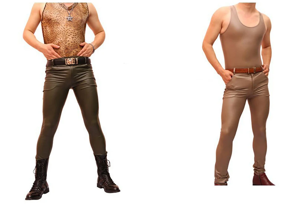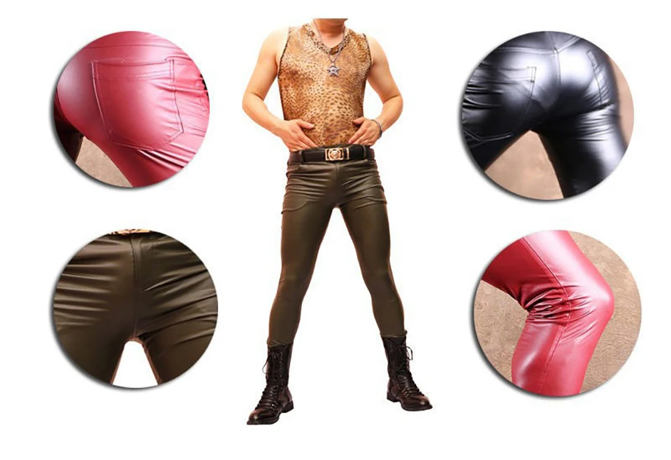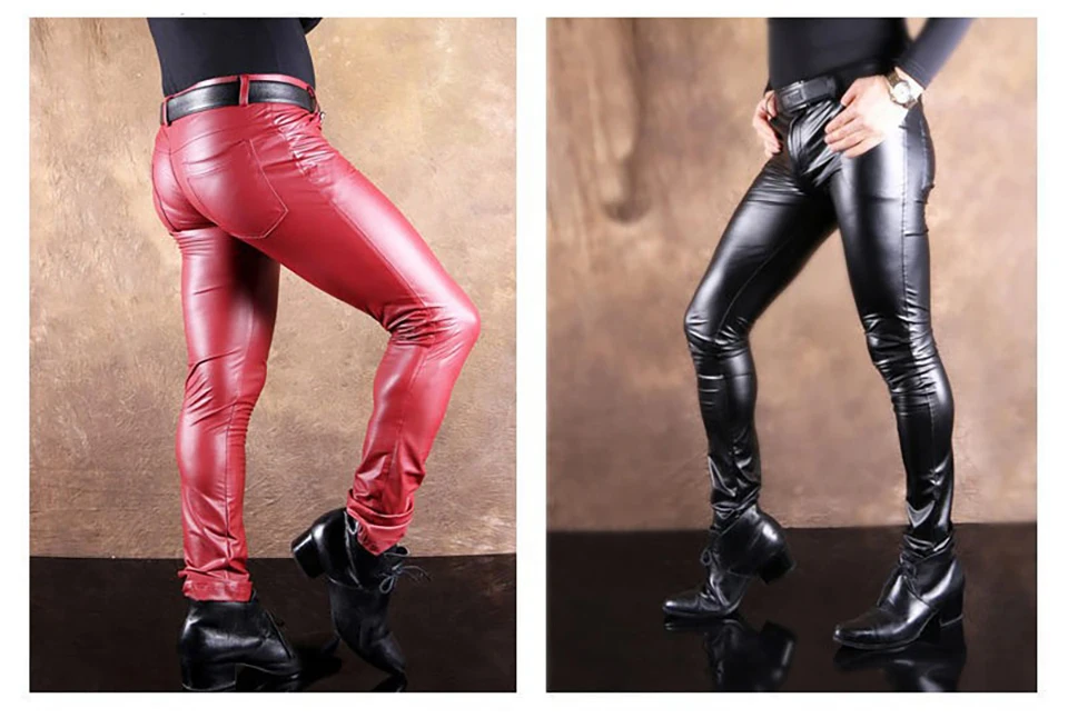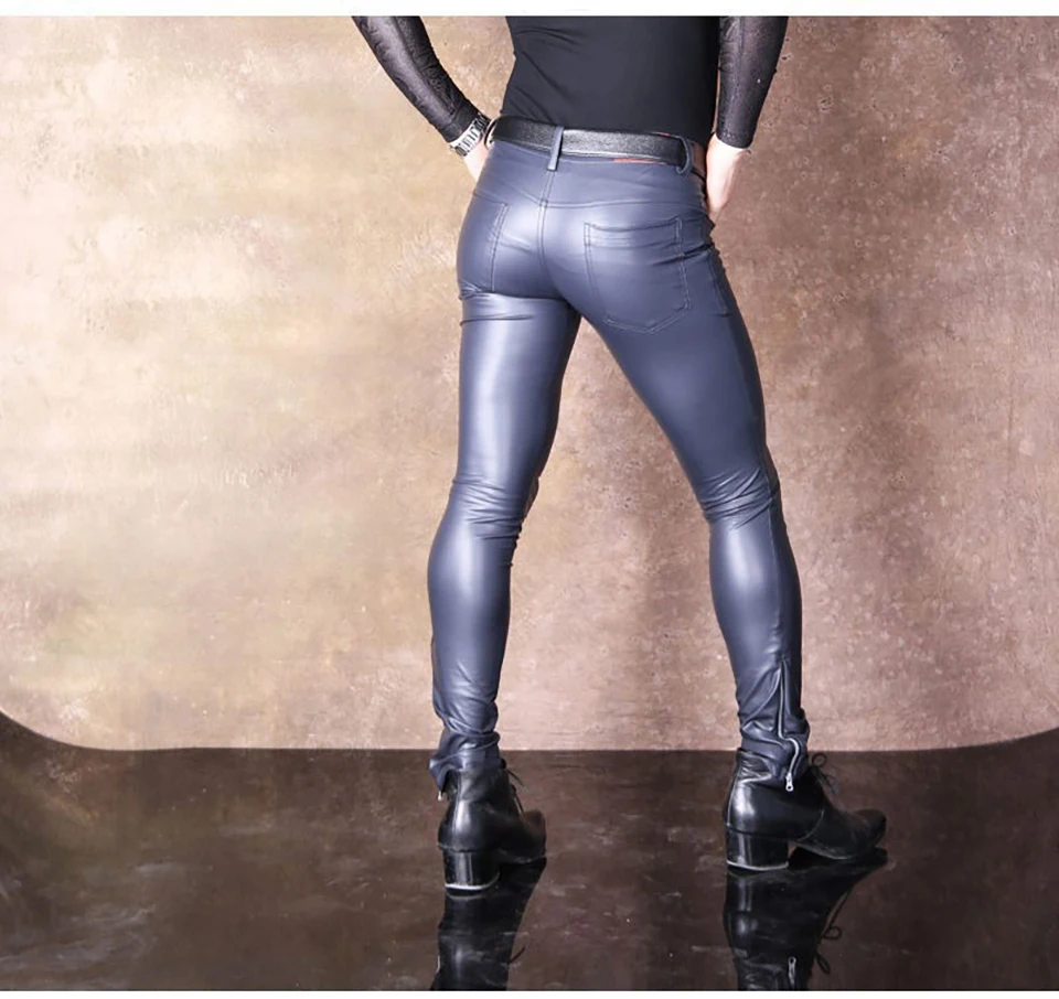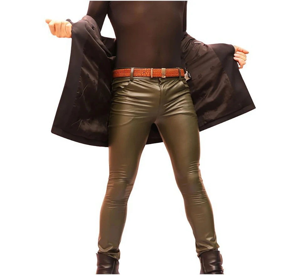Free Shipping Men Cool Thin Soft Matte Bright Imitation Leather Pants Leg Pants Casual Jeans Slacks Skinny Long Trousers
