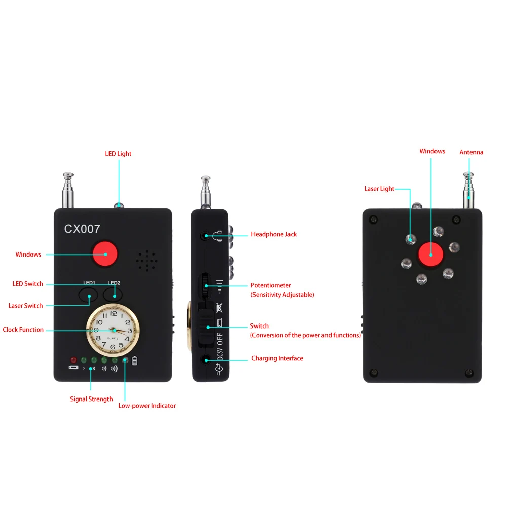 Free Shipping Multi Wireless Radio Wave Signal RF GSM Device Spy Pinhole Hidden Camera Lens Sensor Scanner Detector Finder CX007