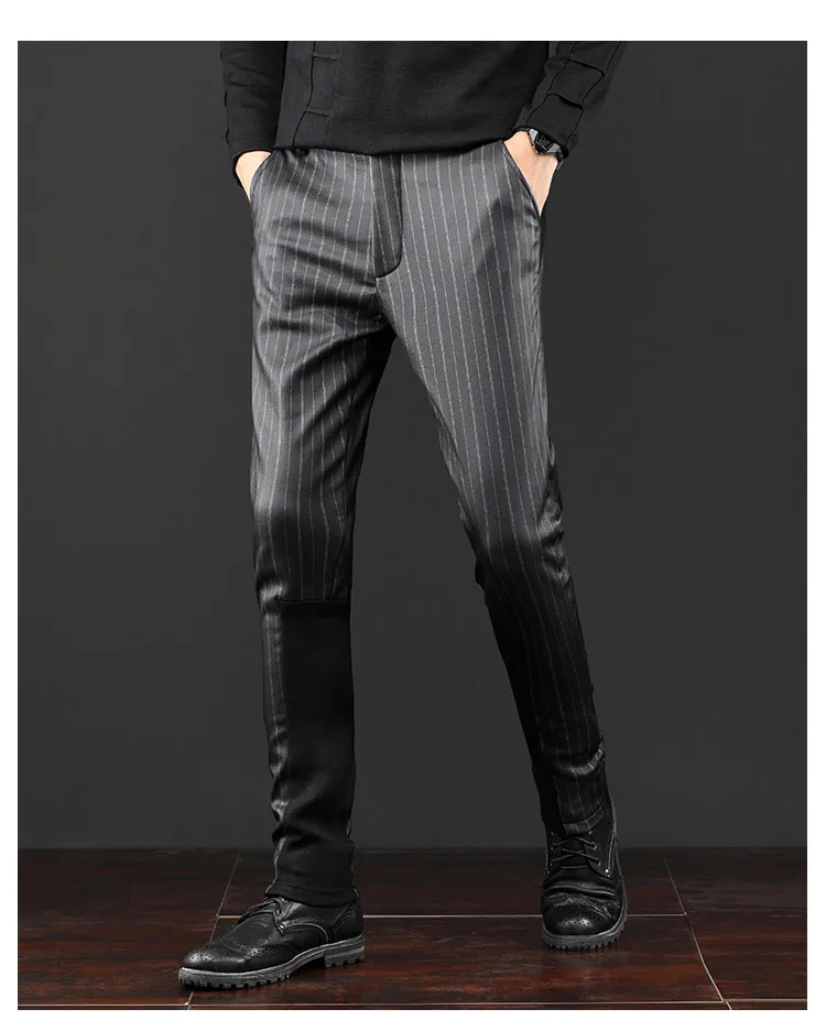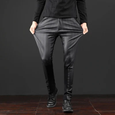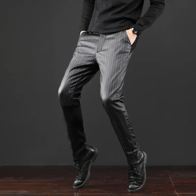 Free Shipping New Autumn winter fashion harem pants men’s male slim Stitch striped casual Korean trousers with or Without velvet