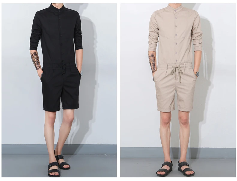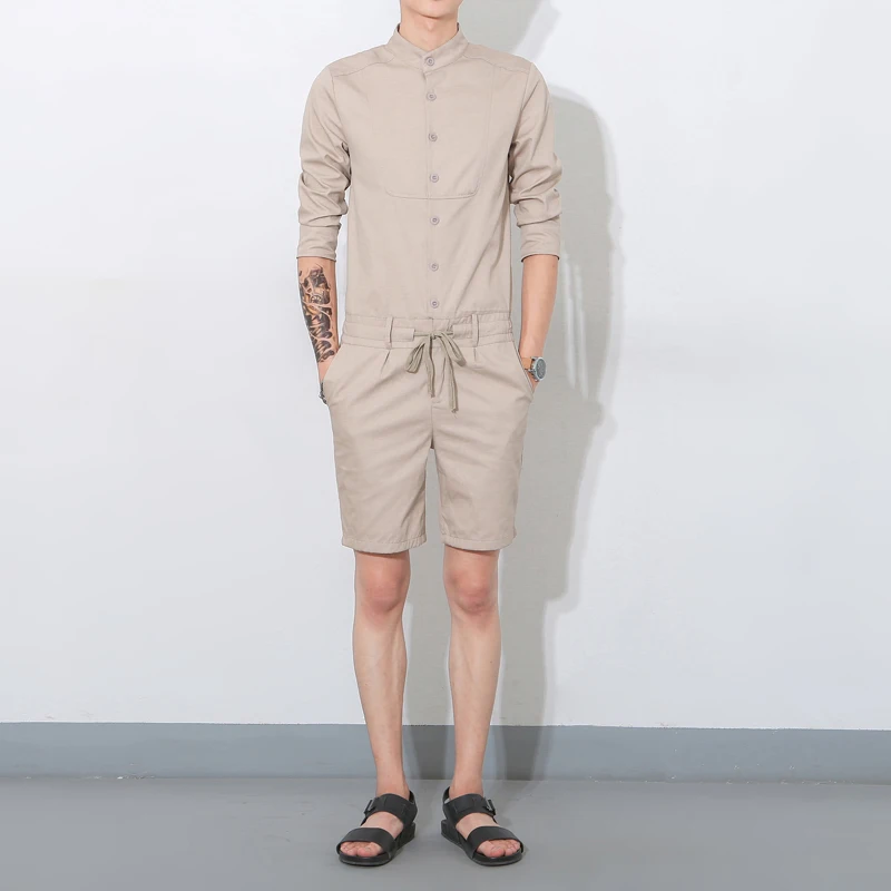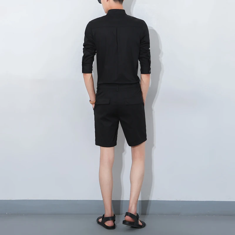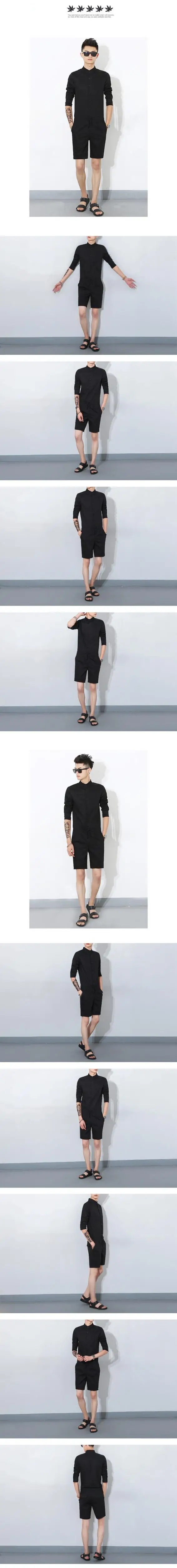 Free shipping 2017 Summer Khaki Military Cargo Pants Fashion Bib Boyfriend Jumpsuits Men’s Korean style singer costumes Overalls