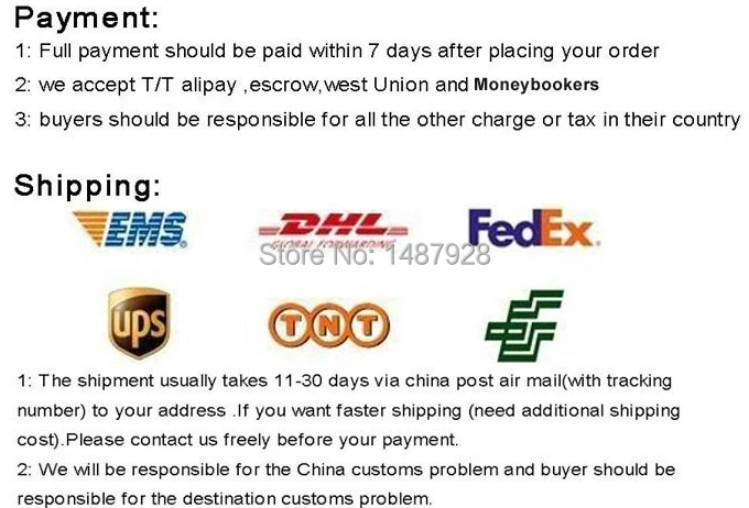 We are not responsible for any custom fees once the items have shipped. By purchasing our products, you consent that one or more packages may be shipped to you and may get custom fees when they arrive in your country.