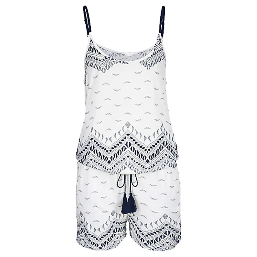 Free Shipping Women Casual Bohemia Style Camis Playsuit Beach Tassels Jumpsuit 80621 Drop Shipping