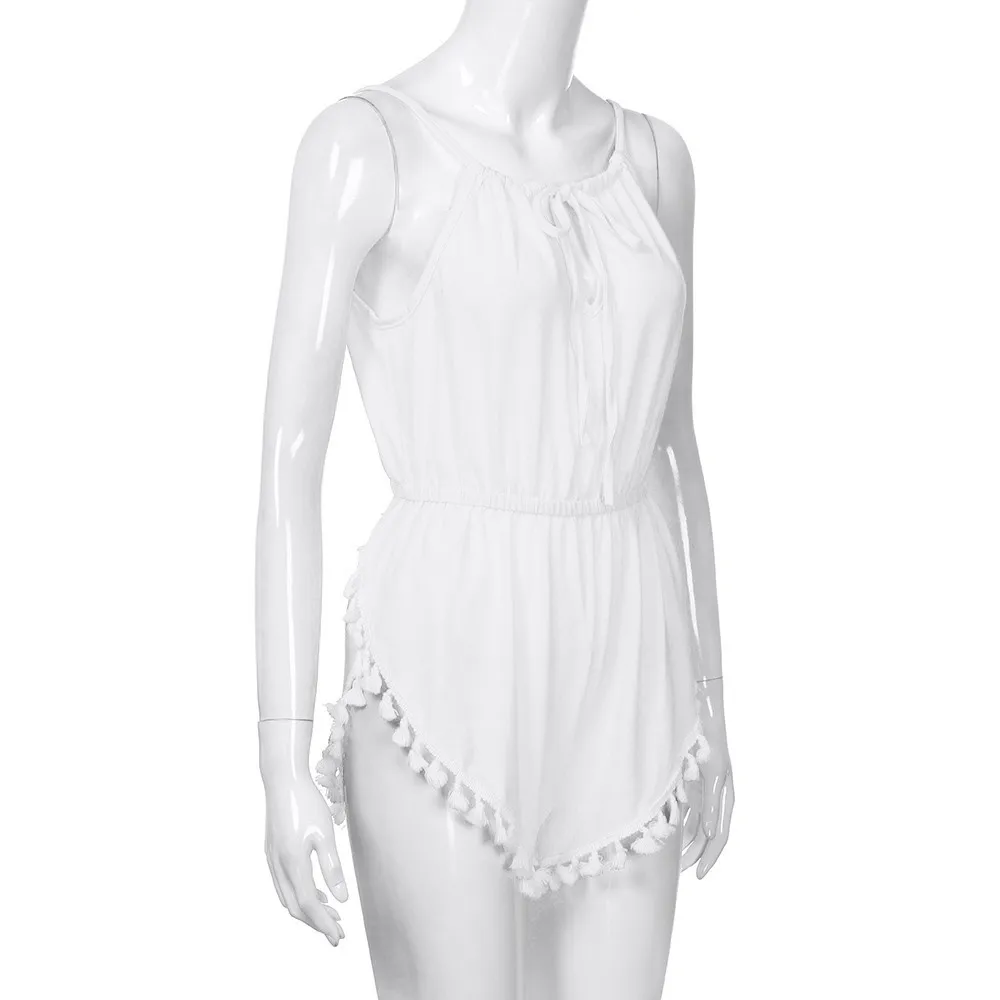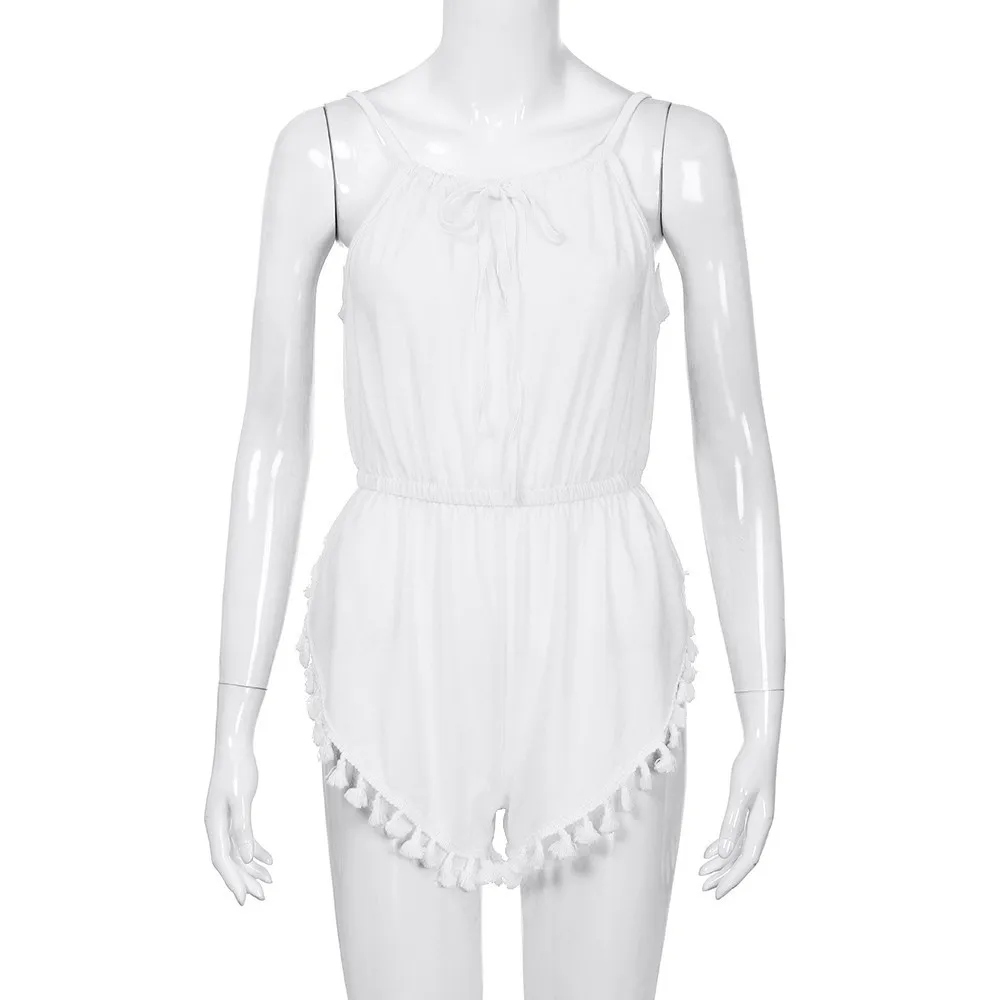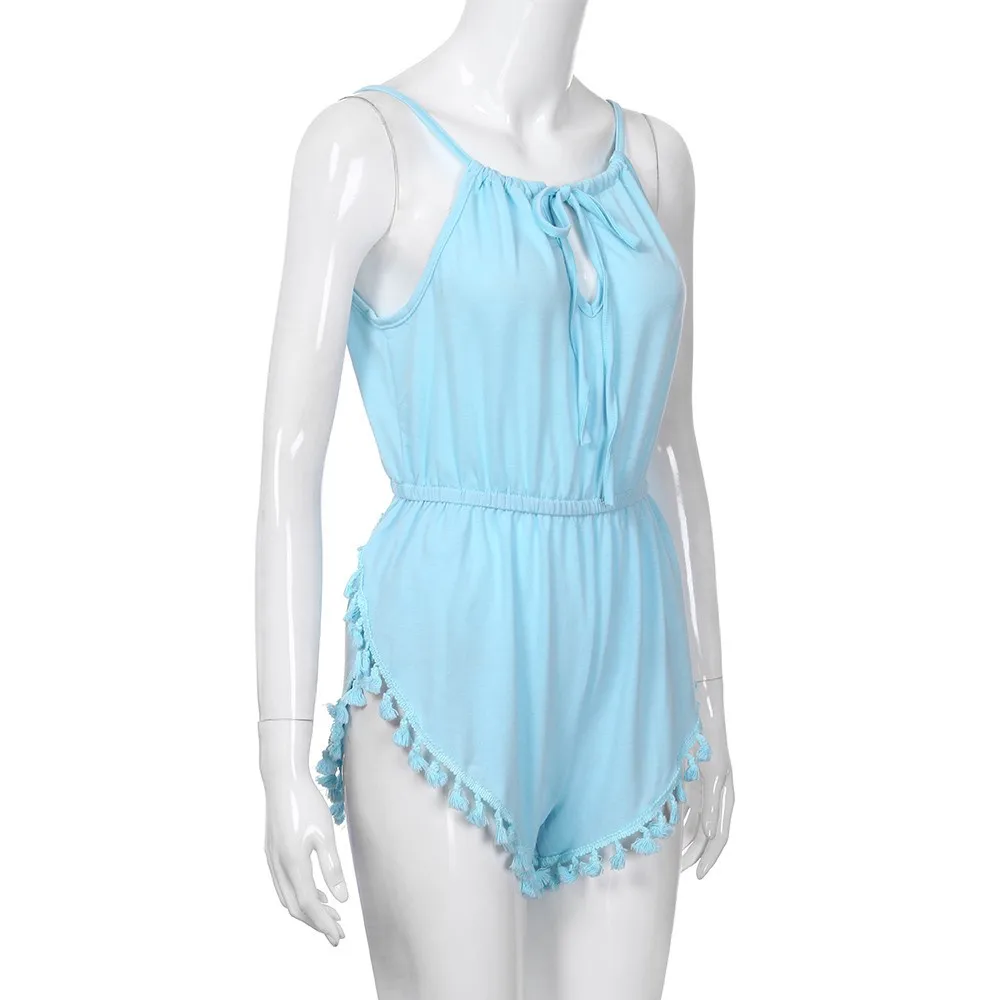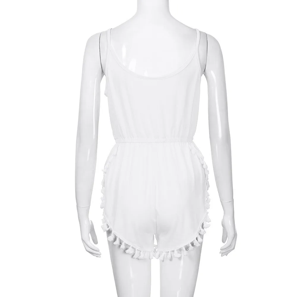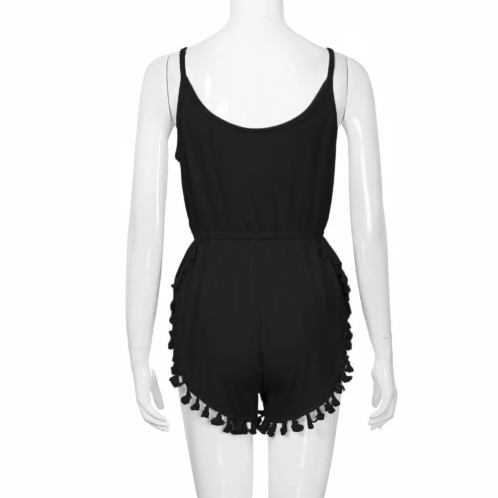 Free Shipping Women Girls Sexy V Neck Strappy High Waist Playsuit Summer Beach Tassels Jumpsuit 80608 Drop Shipping