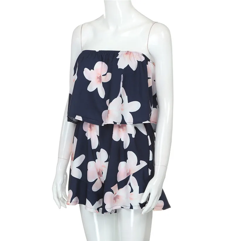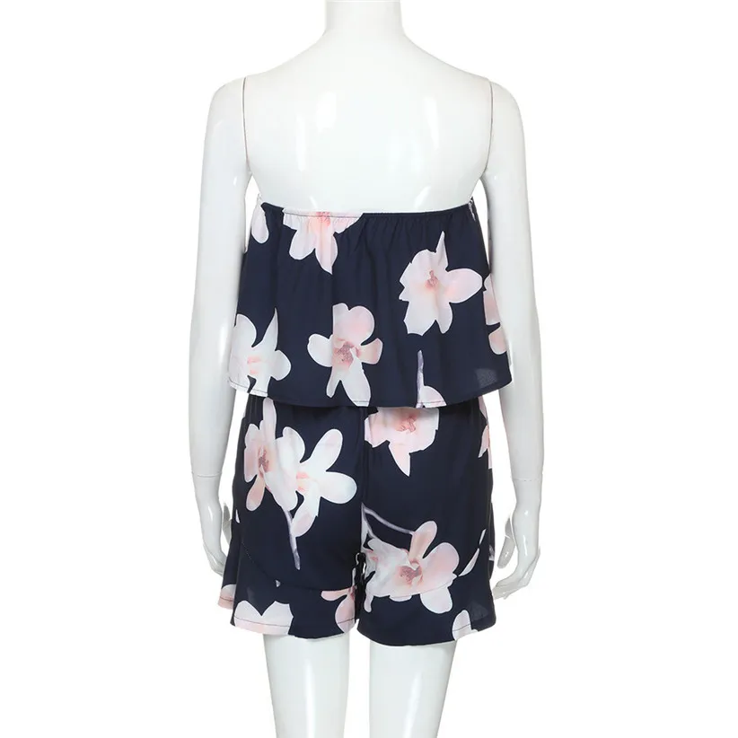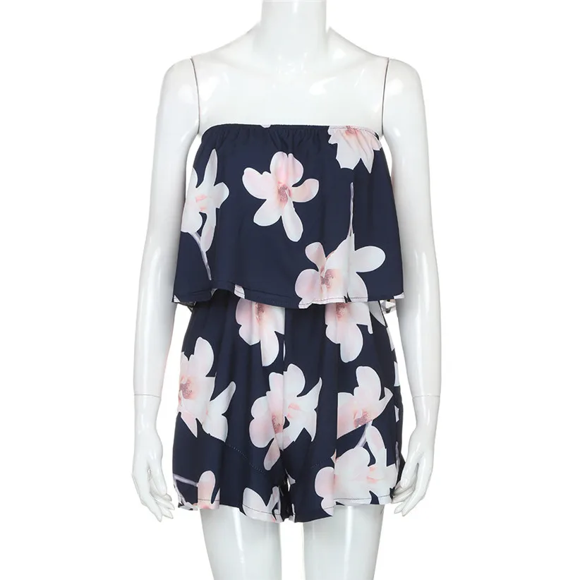 Free Shipping Women High Fashion Flower Print Strapless Playsuit Off Shoulder Ladies Shorts Jumpsuit 80516 Drop Shipping