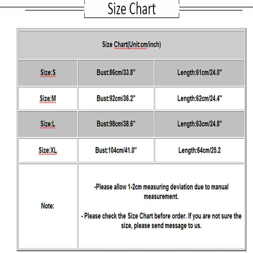 Size:L Bust:98cm/38.6″ Length:63cm/24.8″