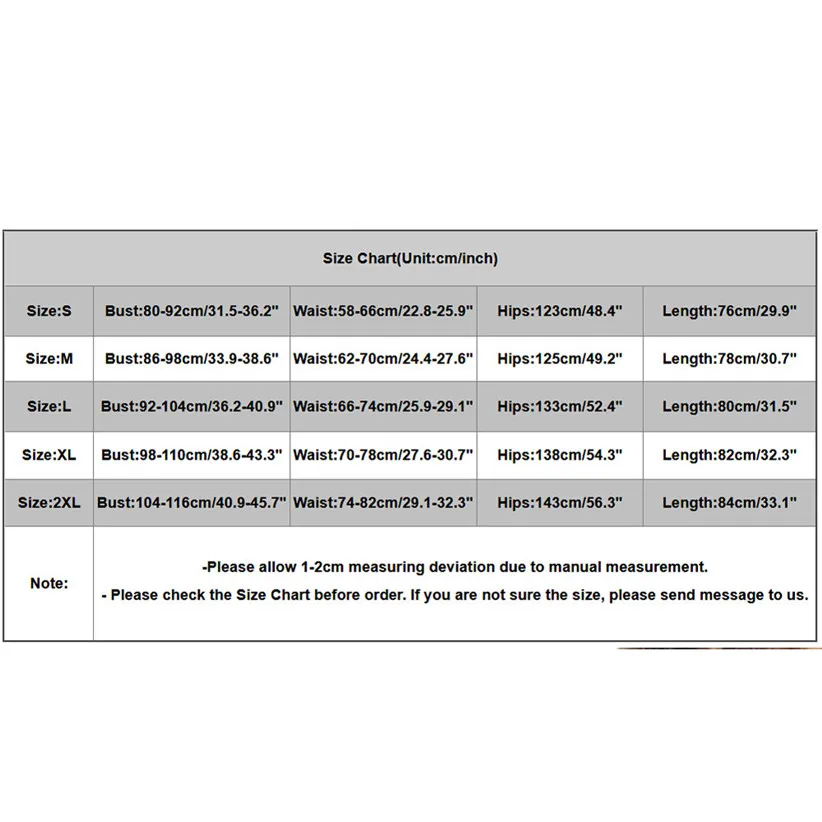 Size:2XL Bust:104-116cm/40.9-45.7″ Waist:74-82cm/29.1-32.3″ Hips:143cm/56.3″ Length:84cm/33.1″