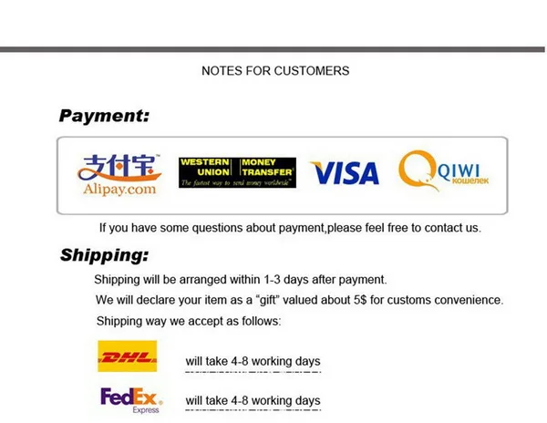 We are not responsible for any custom fees once the items have shipped. By purchasing our products, you consent that one or more packages may be shipped to you and may get custom fees when they arrive in your country.