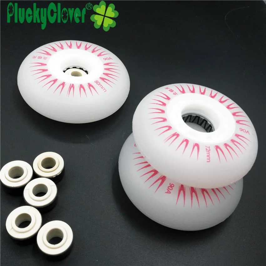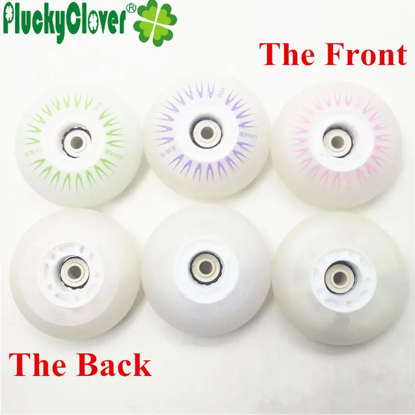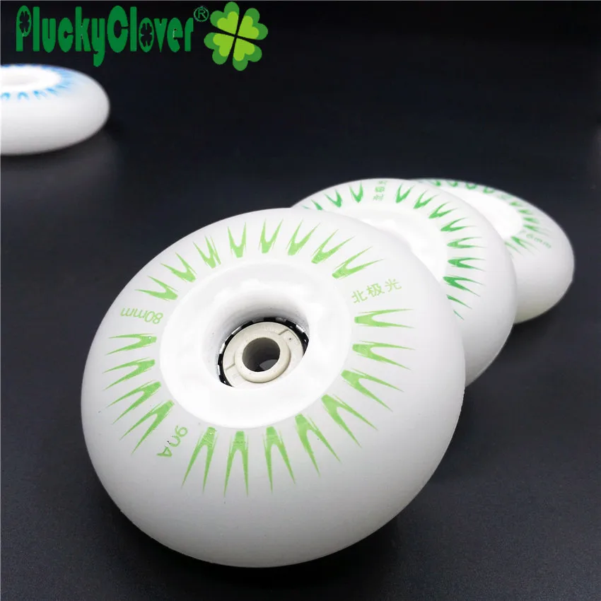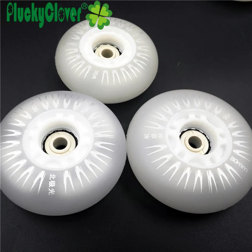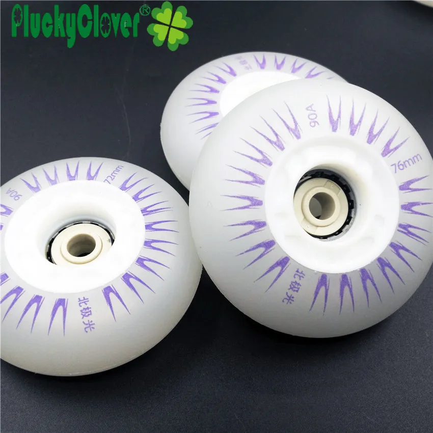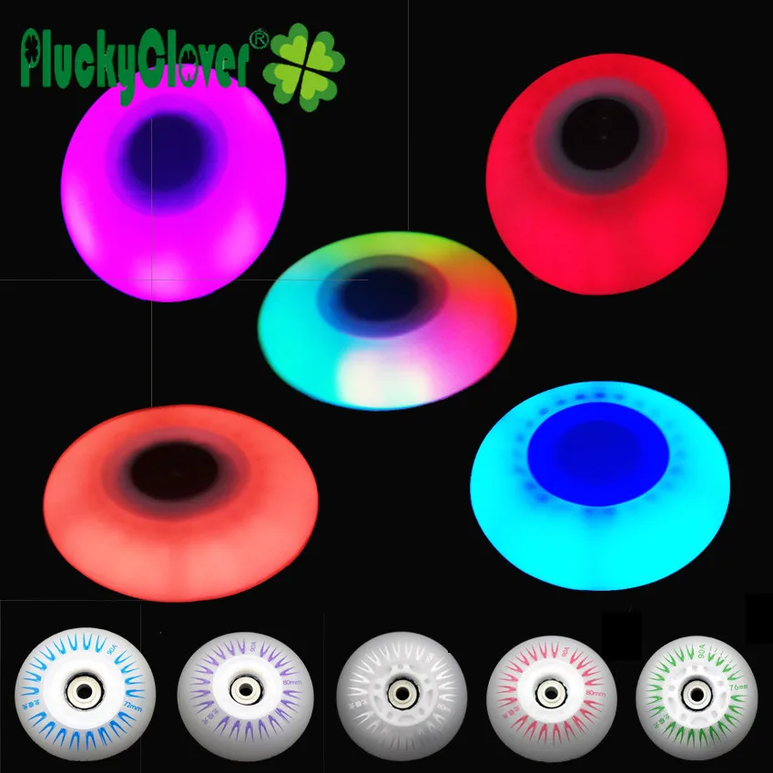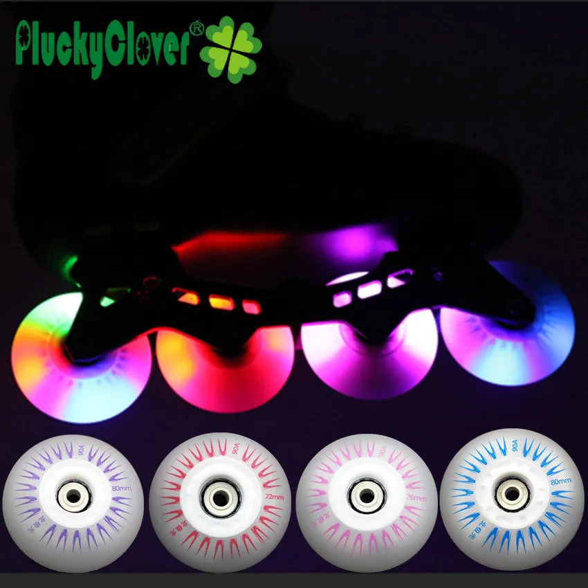 Pluckyclover 4pc Led Flashing Inline Roller Skates Wheels 72mm 76mm 80mm Slalom Braking Skating PU Wheel 90a with Magnetic Cores