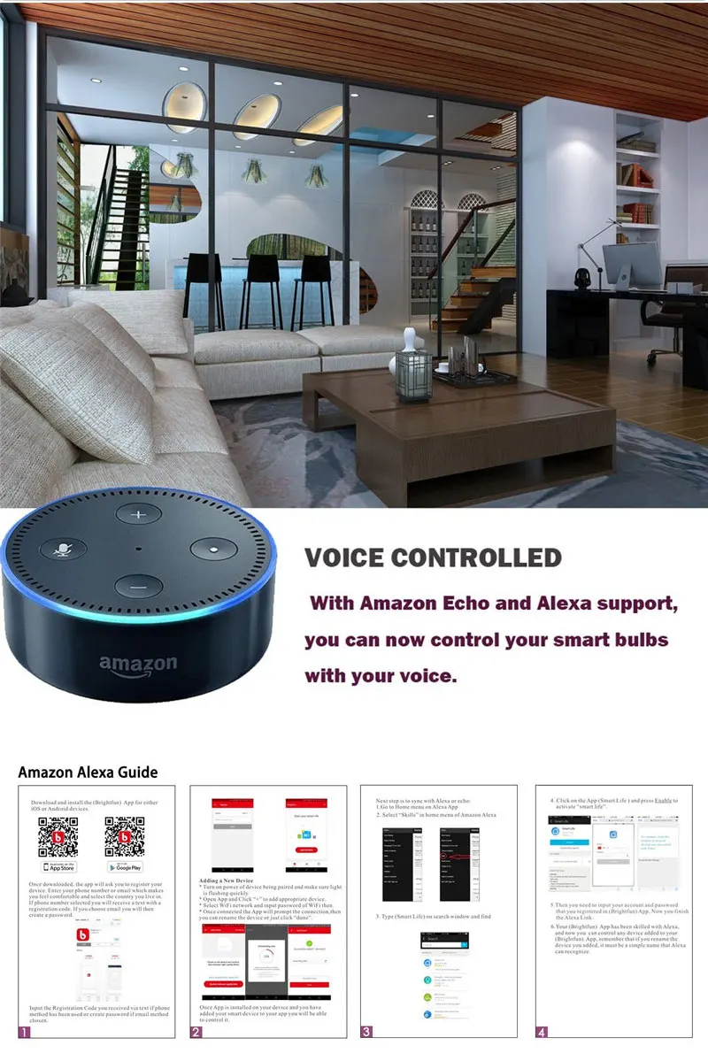 Note :Can work with Amazon AlexaCan be controlled by your voice via mobile phone