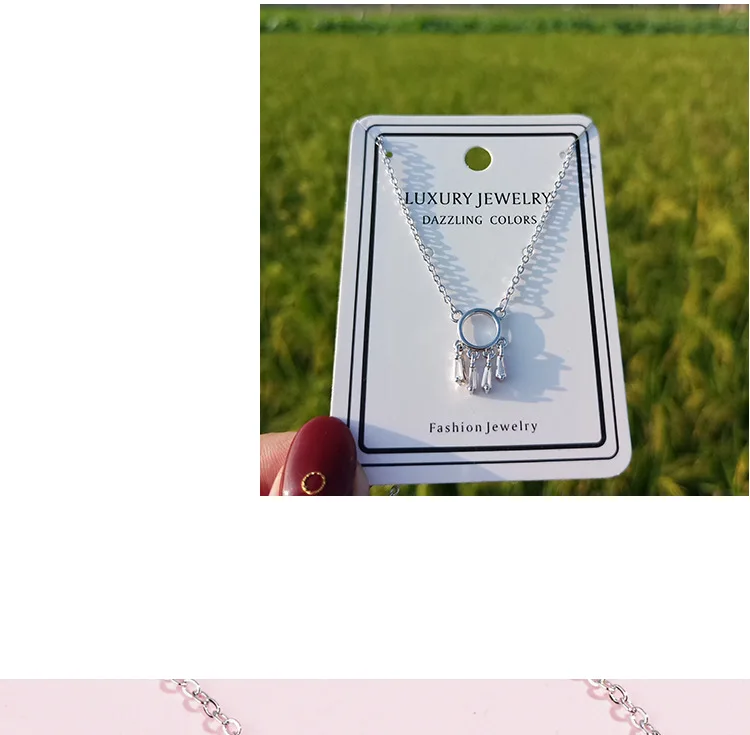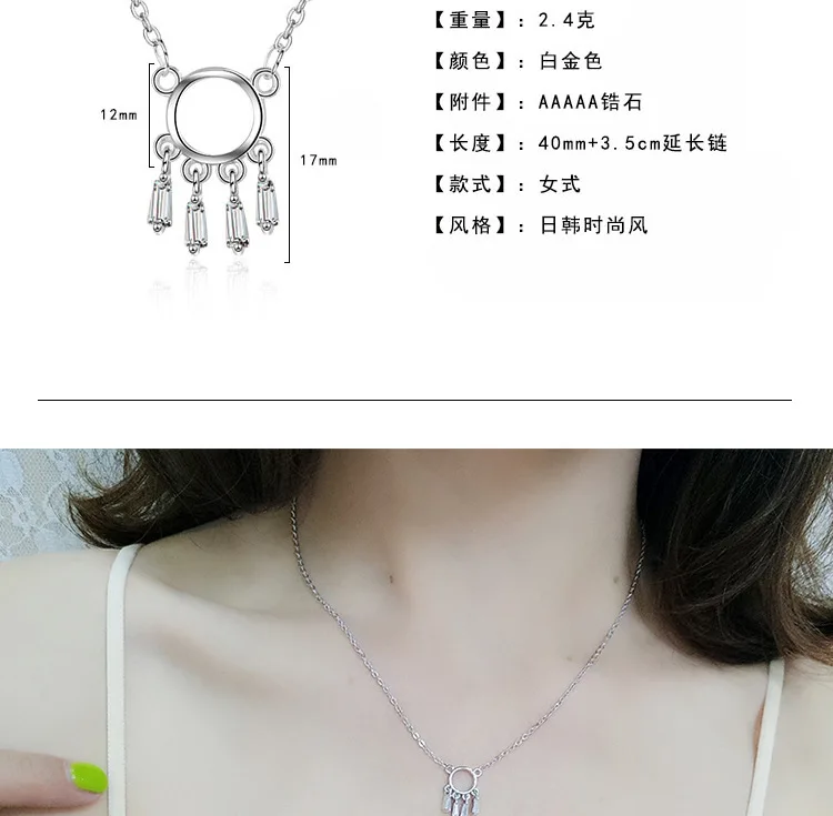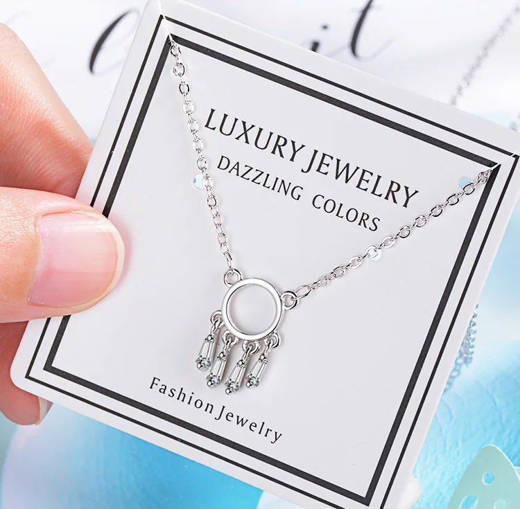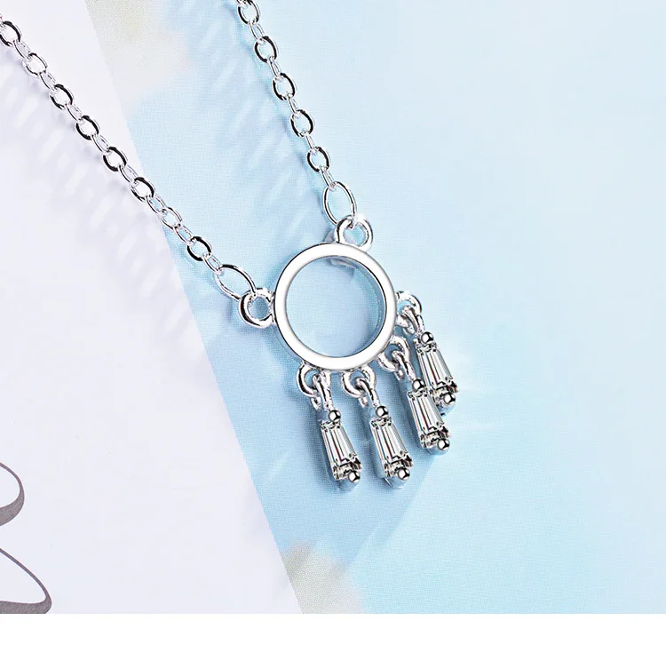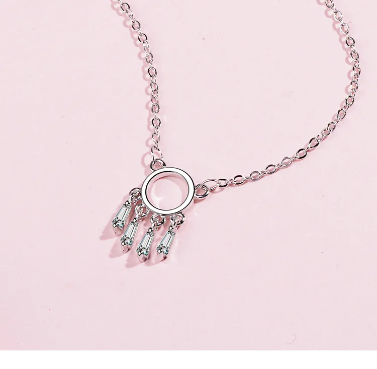 Fresh Dream Catcher Female 925 Sterling Silver Jewelry Personality Simple Hollow Crystal Clavicle Chain Round Necklaces H354