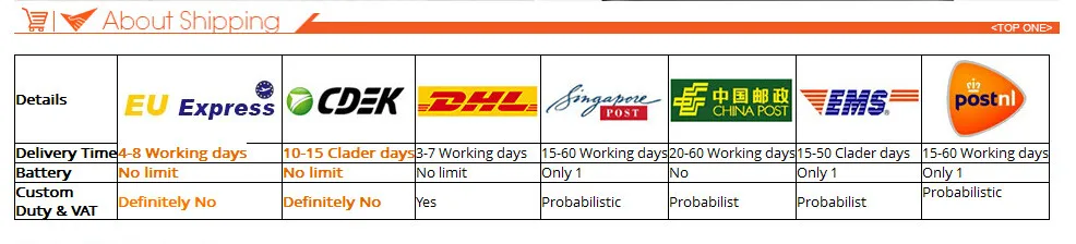 Packages from our warehouse in China will be shipped by ePacket or EMS depending on the weight and size of the product. Packages shipped from our US warehouse are shipped through USPS.