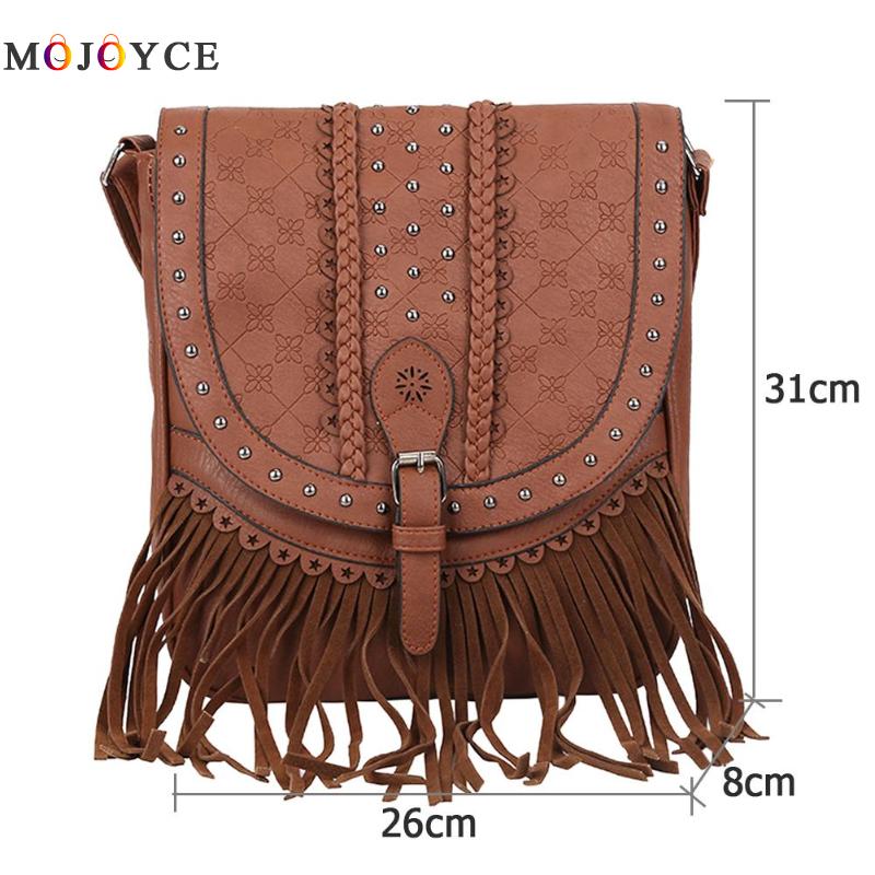 Fringe Tassel Women Girls Flap Small Shoulder Messenger Crossbody Bags PU Leather Vintage Handbags