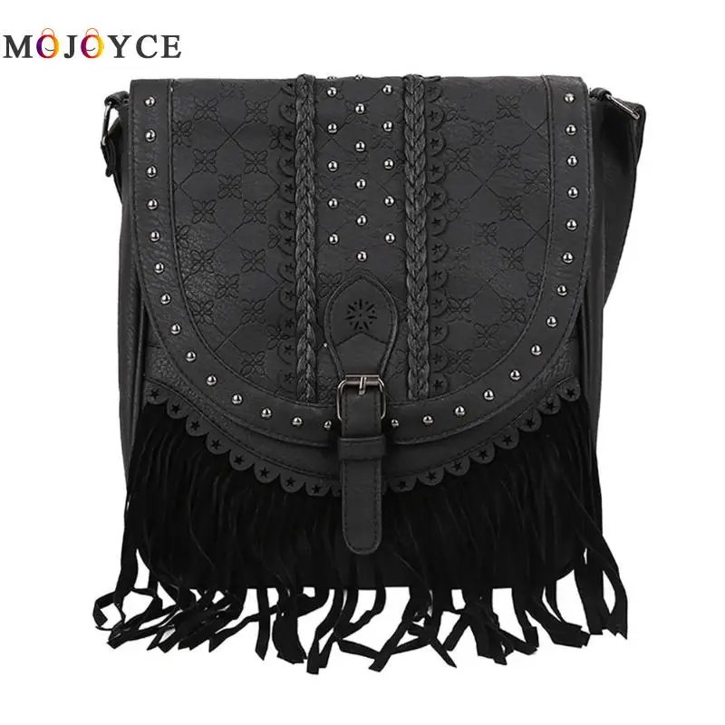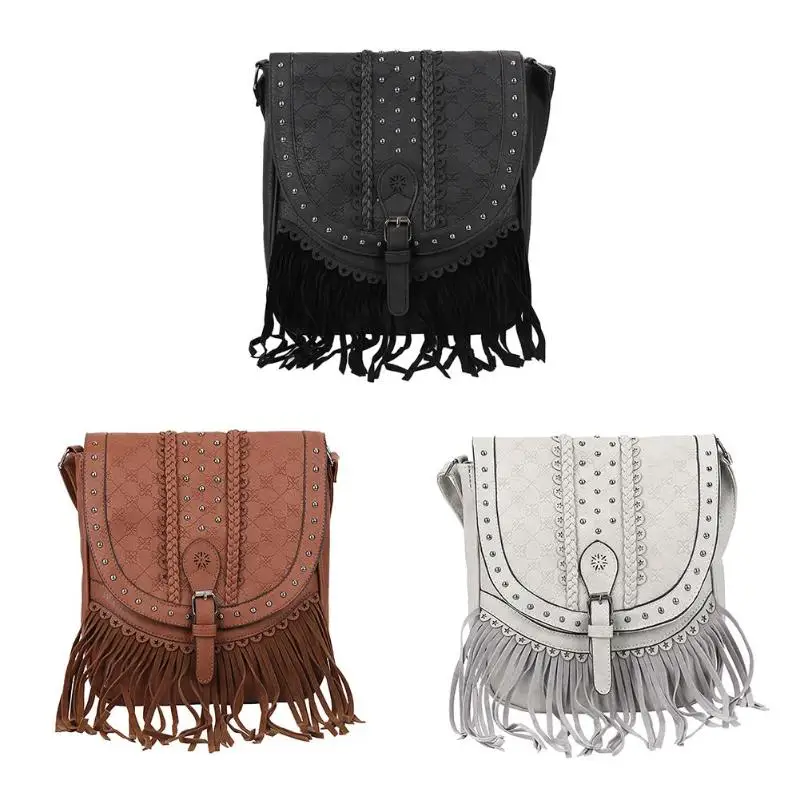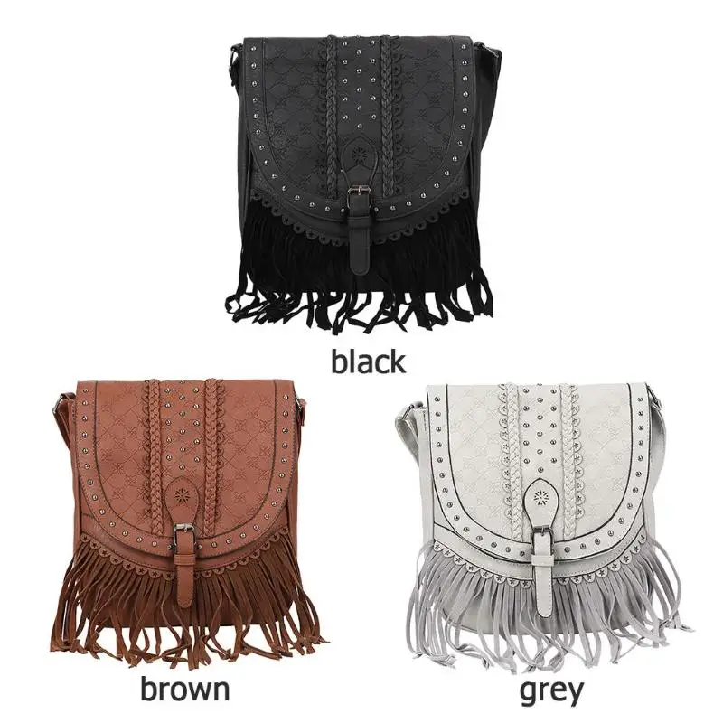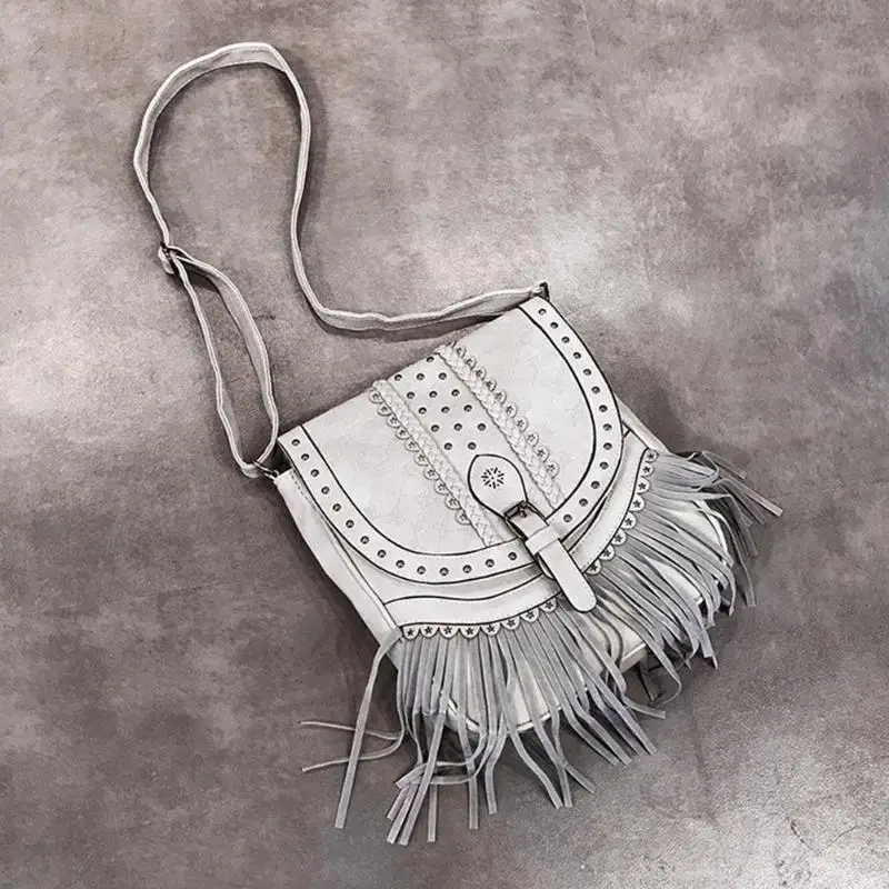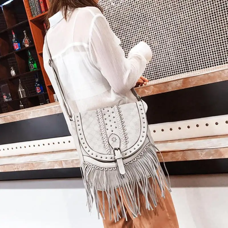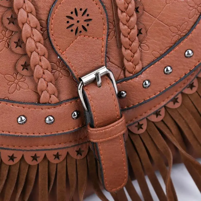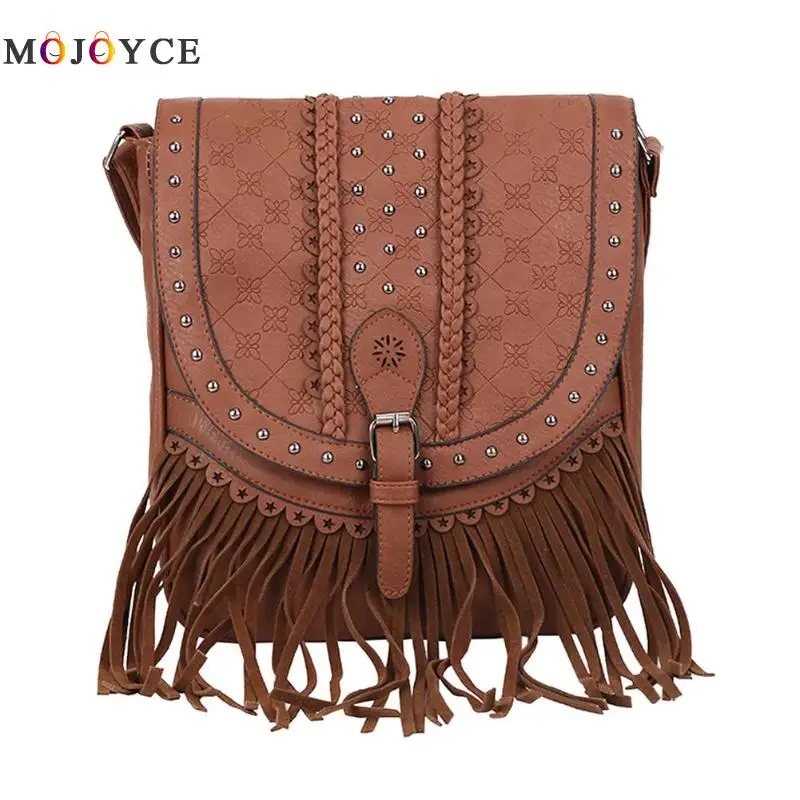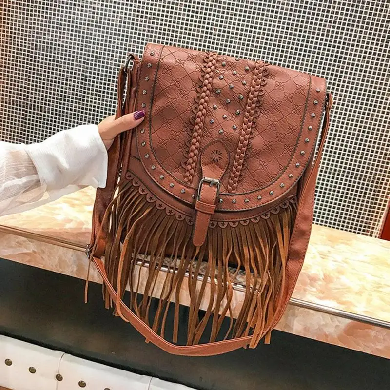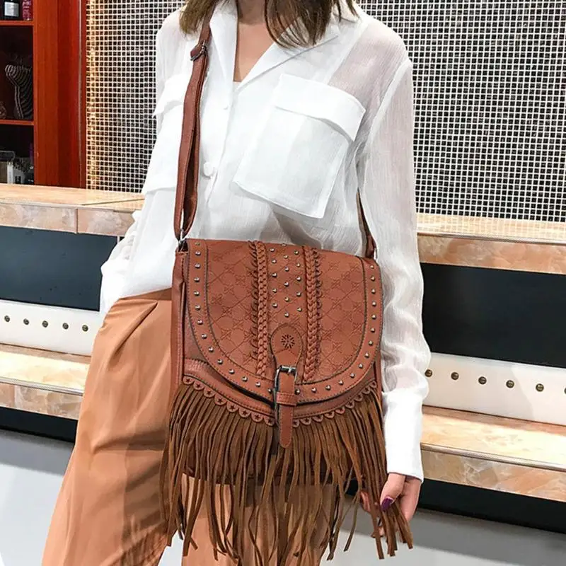 Fringe Tassel Women Girls Flap Small Shoulder Messenger Crossbody Bags PU Leather Vintage Handbags
