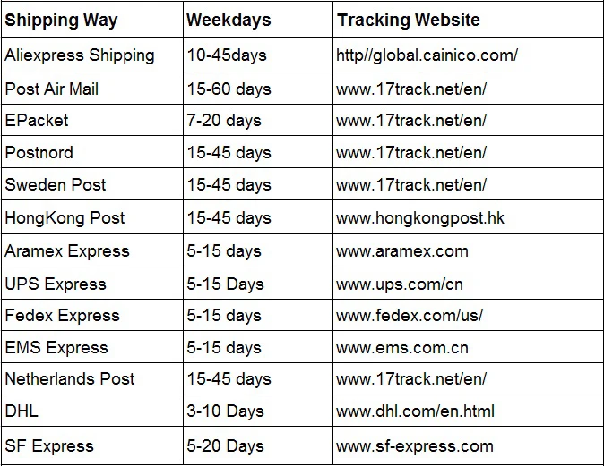 we ship worldwide by Aliexpress Shipping,Post Air Mail, EPacket,EMS,UPS,DHL,E-PACKET and so on .