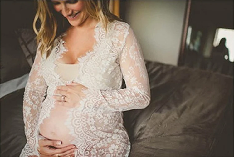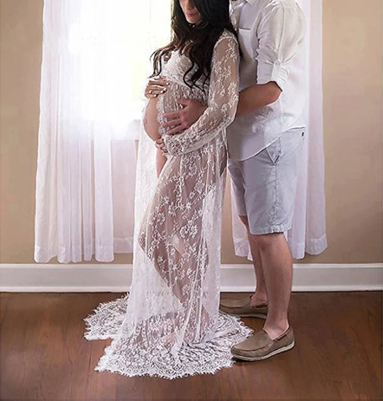 Front Slit White Lace Dress for Maternity Photography Props Pregnant Women Gown Photo Shoot Clothes Pregnancy fotografia Dress