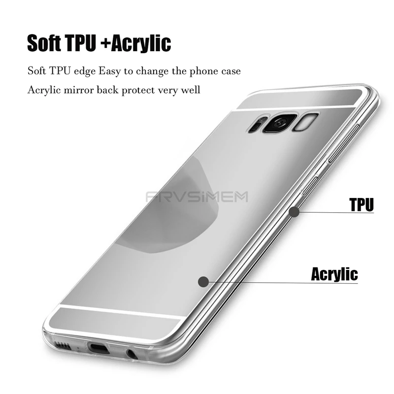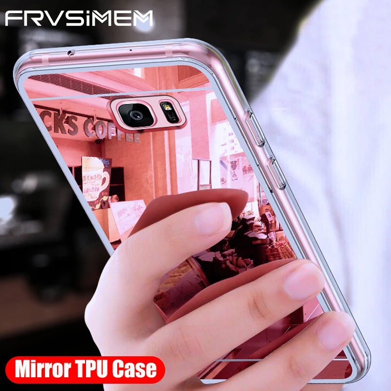 Frvsimem Brand Case For Samsung Galaxy S6 S7 edge S8 Plus S9 Note 8 9 A6 A8 2018 Plus Case Cover Mirror Makeup TPU edge Case