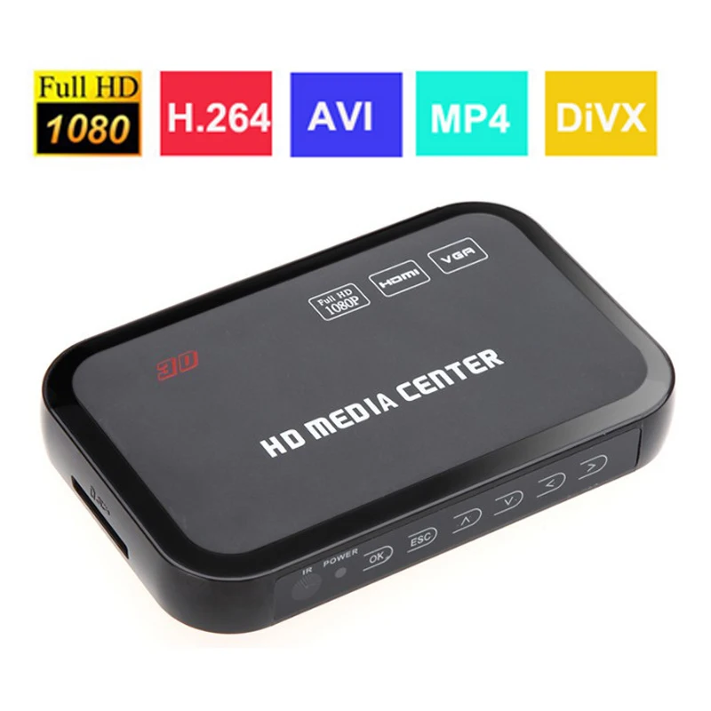 New Full HD 1080P Media Player Center MultiMedia Video Player with HDMI VGA AV USB SD/MMC Port Remote Control Surpport mkv H.264