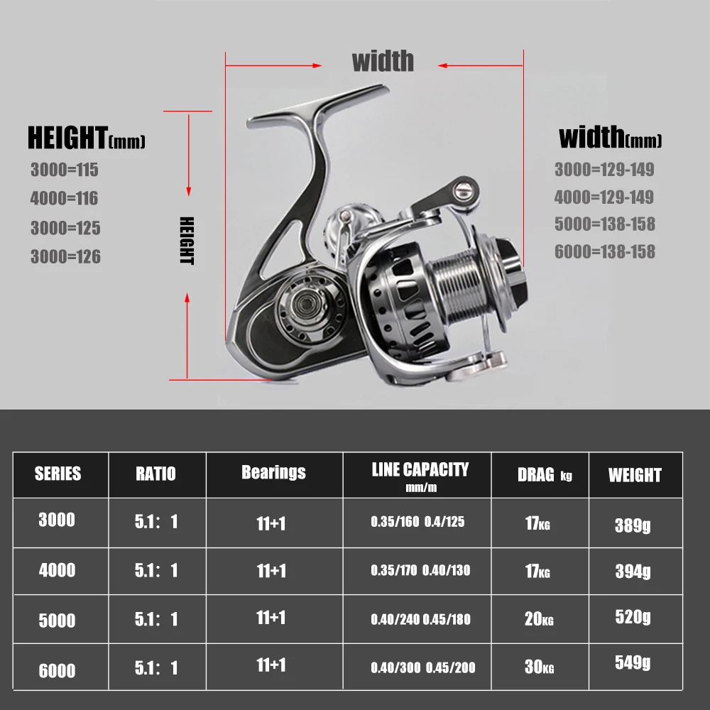 Full Metal 5.5:1 Spinning Fishing Reels Saltwater Stainless Gear 11+1BB Carp Fishing CNC Technology Carbon Textile Brake Pesca