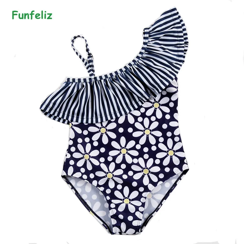 Funfeliz Girls swimsuit 2-12 Years Floral Print One Piece Swimwear for Children 2018 Quality Children Bather Girl Bathing Suits