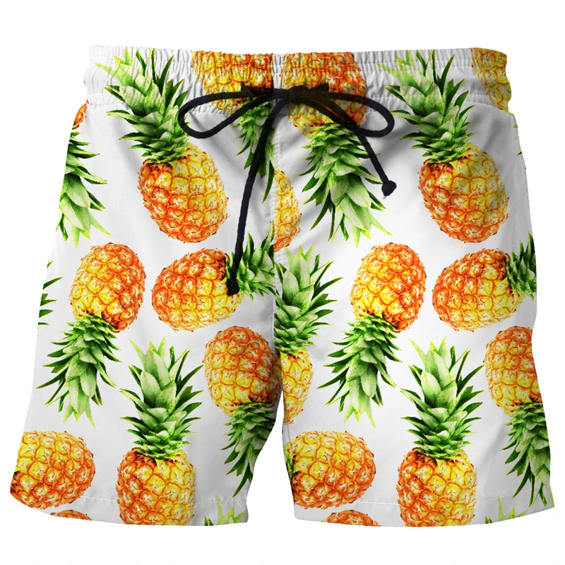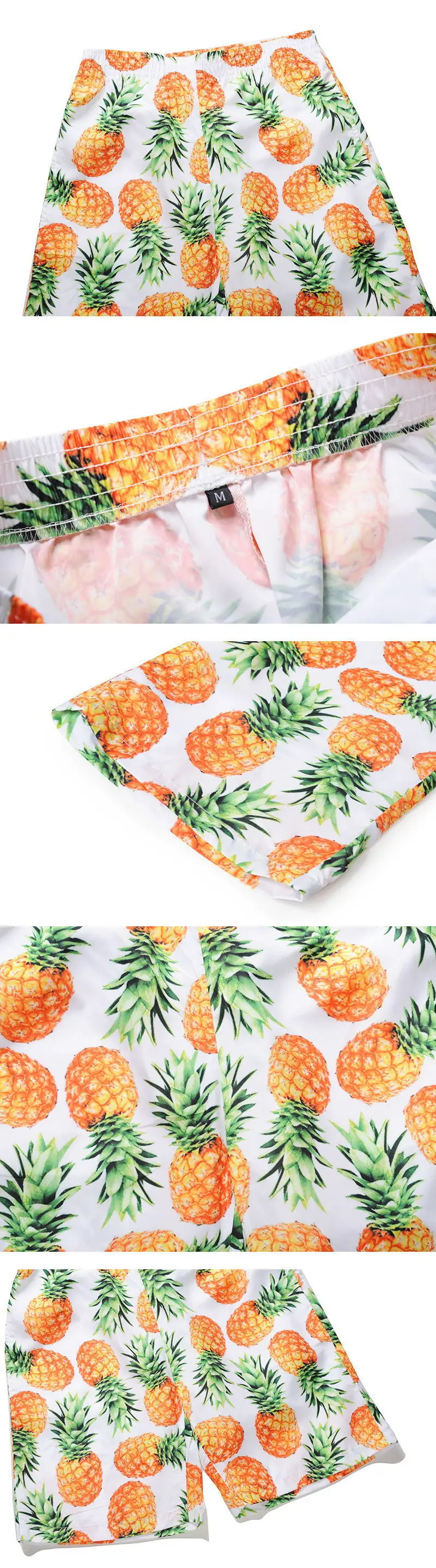 Funny 3D Pineapples Print Men Beach Board Shorts Quick Dry Bermudas Shorts Polyester Man Pants Boys Male Beachwear EU Size