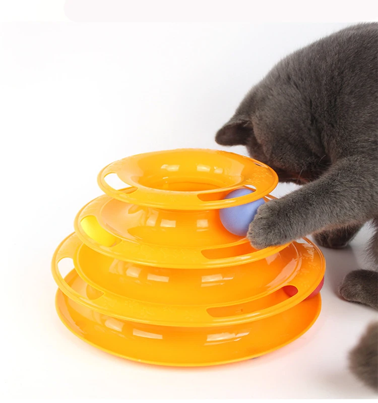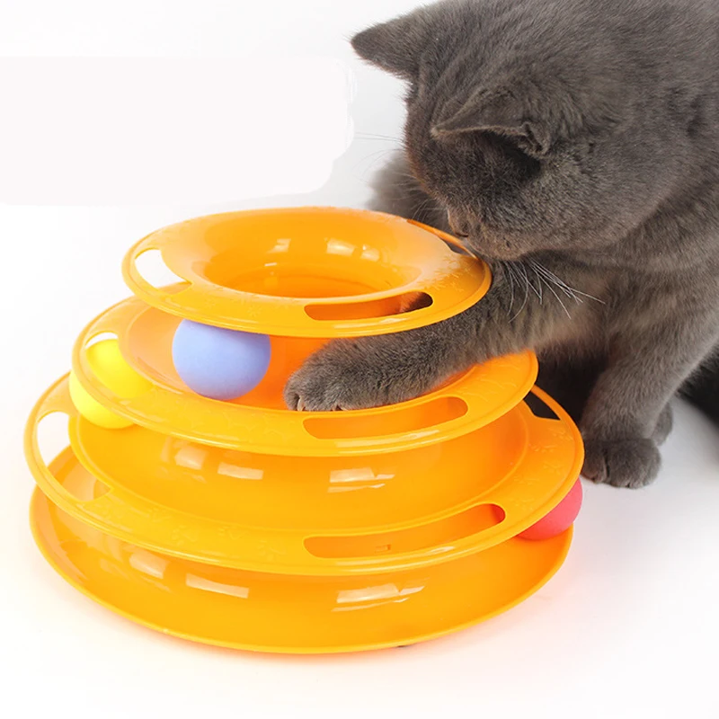 Funny Cat Pet Toy Plastic Three Levels Tower Tracks Disc Amusement Shelf Play Station Pet Cats Triple Play Disc Ball Toys