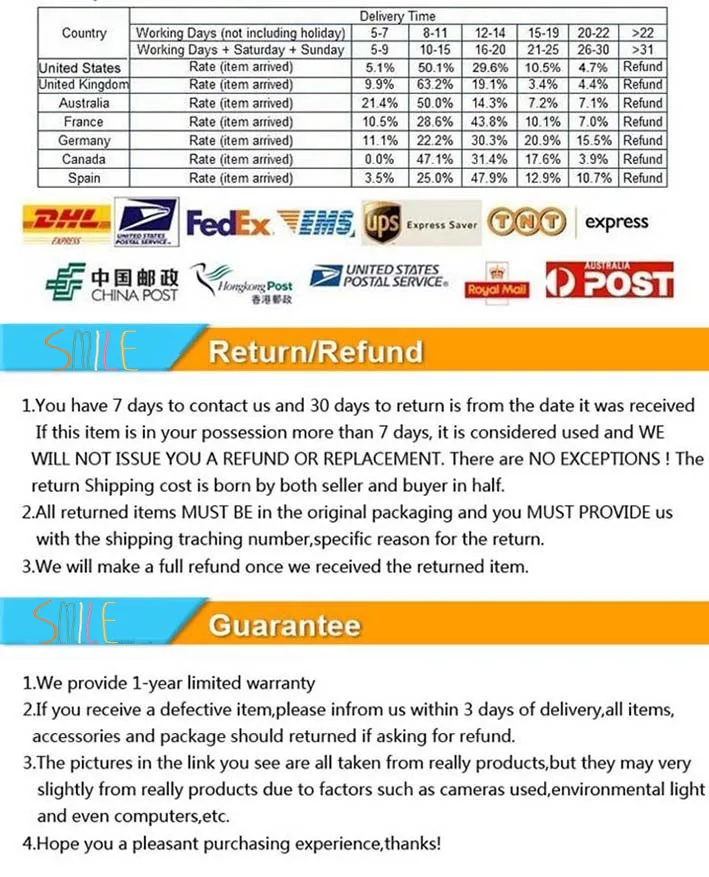 *You can submit refund requests within 15 days after the guaranteed period for delivery (45 days) has expired. You can do it by sending a message on Contact Us page