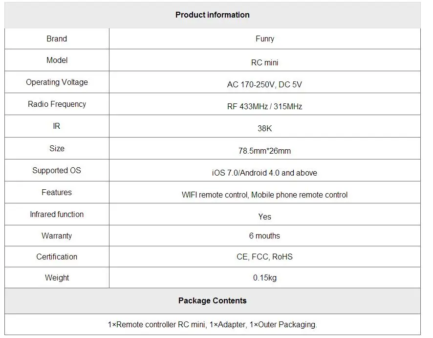 FUNRY Wifi APP Switch RC mini Smart Wireless Remote Control Kit RF 433MHz 315MHz WIFI Smart Switch Home Automation Module Host