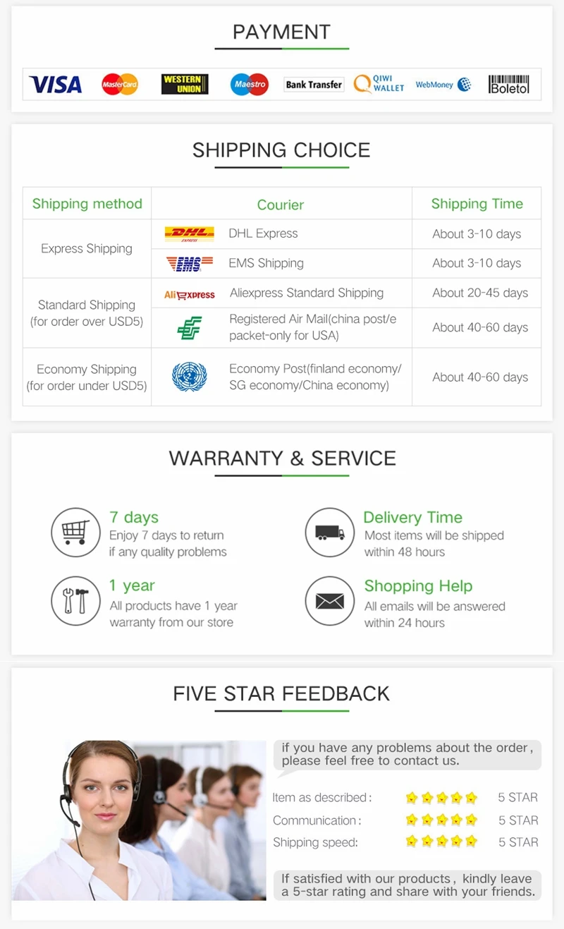 • If you did not receive the product within the guaranteed time( 45 days not including 2-5 day processing) you can request a refund or a reshipment.